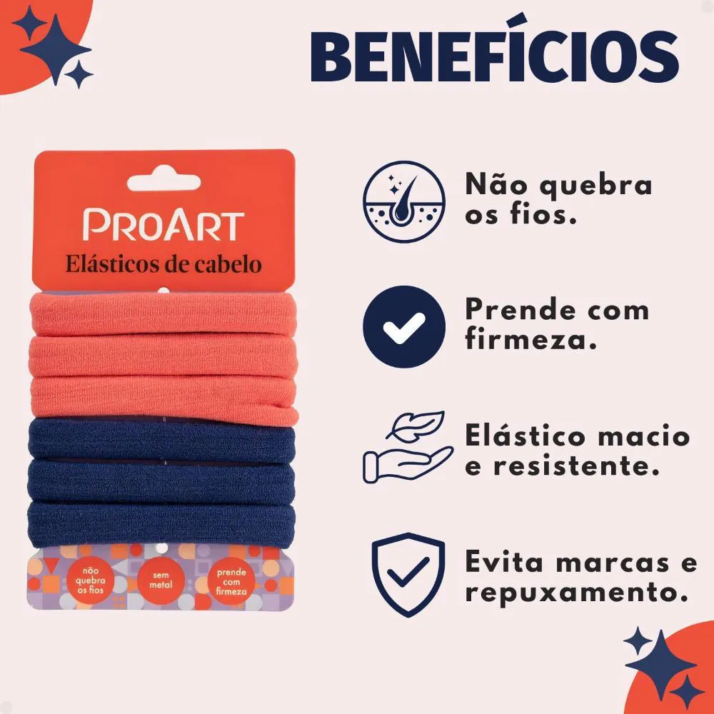Os Elásticos de Cabelo Proart Azul e Laranja EC19B unem praticidade, resistência e estilo em um só acessório. Com cores vibrantes e acabamento moderno, são ideais para quem busca prender o cabelo com firmeza e conforto sem abrir mão do visual. Feitos com material elástico de alta durabilidade, não quebram nem marcam os fios, sendo perfeitos para o uso diário e para todos os tipos de cabelo.Benefícios Principais