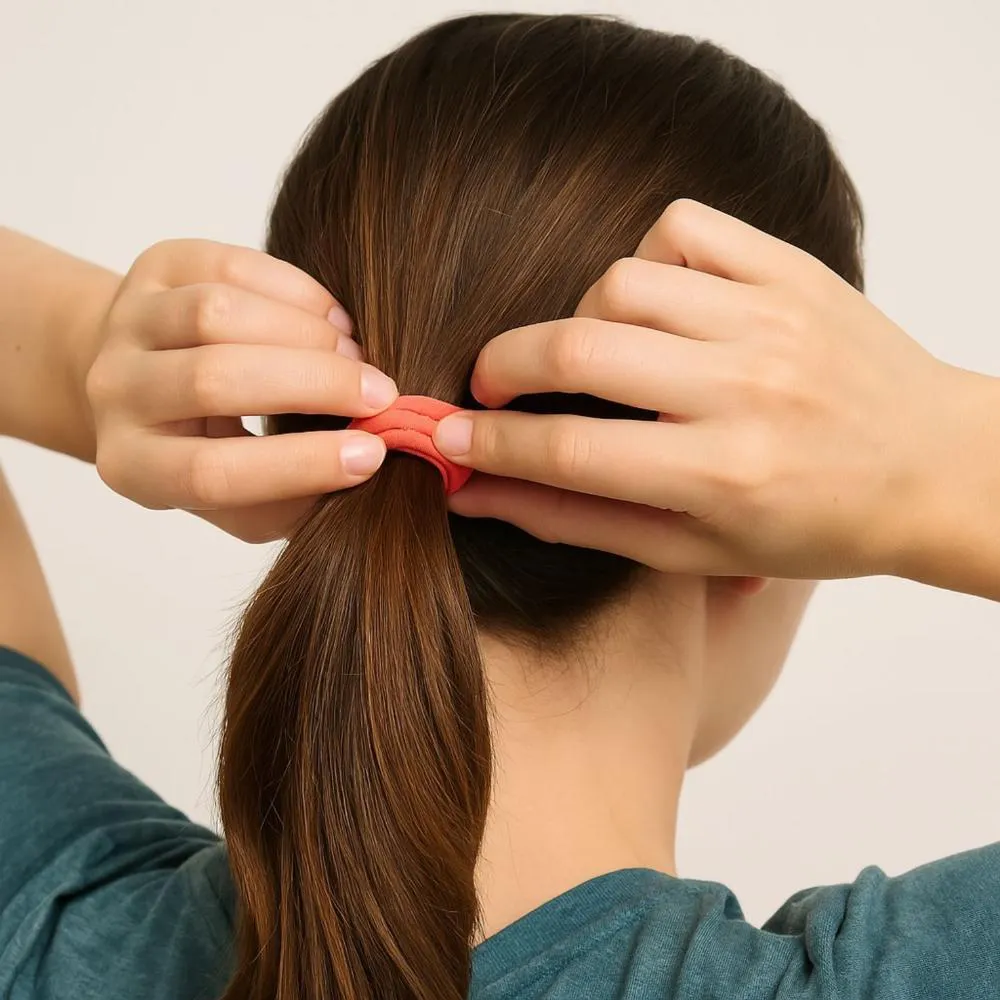 - Utilize o elástico para prender o cabelo na posição desejada, ajustando a firmeza conforme o volume dos fios.