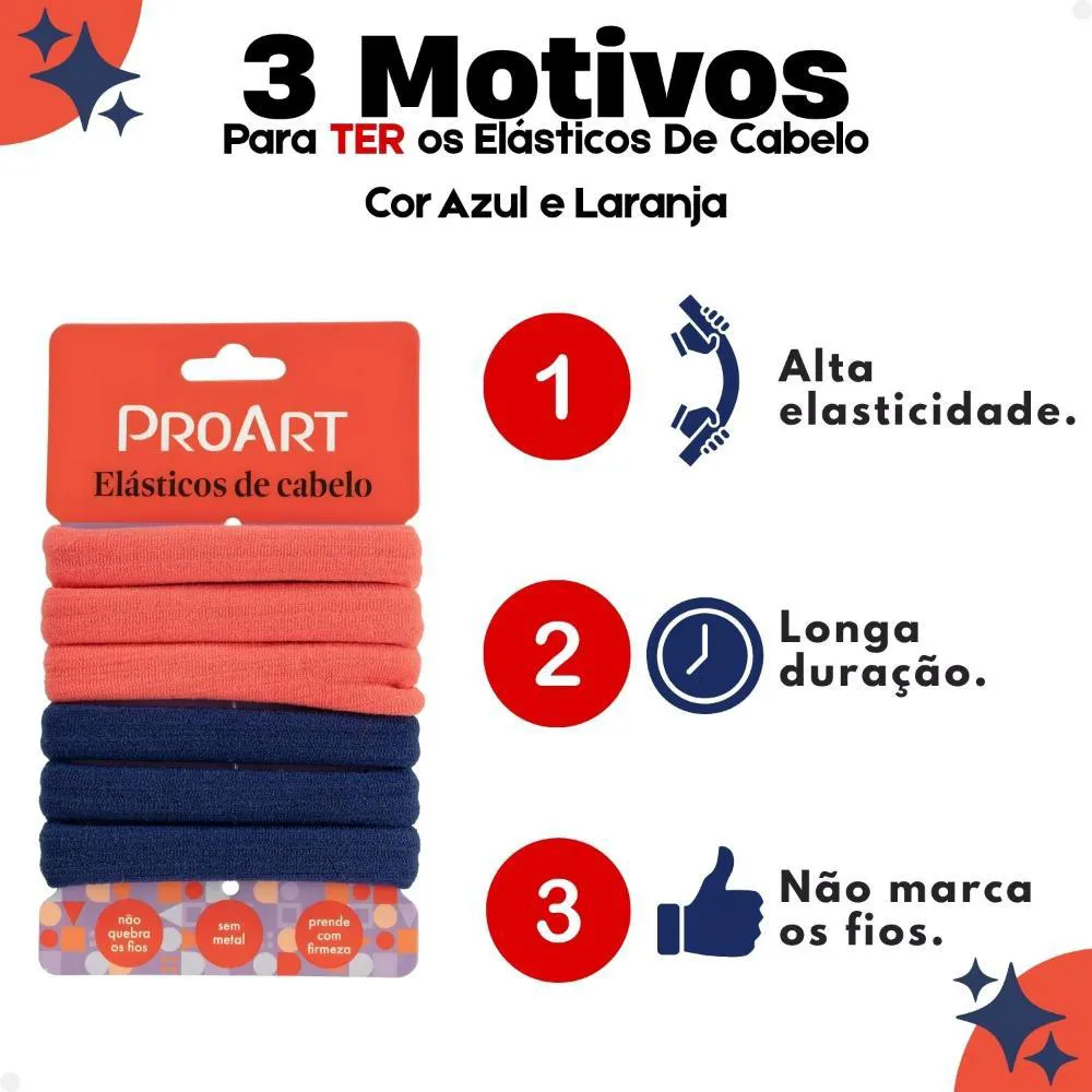 Elásticos De cabelo Proart Cor Azul e Laranja Ec19b