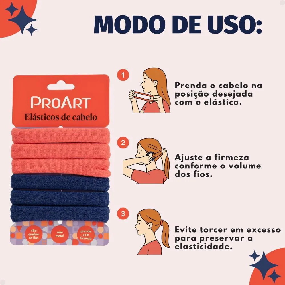 - Elásticos resistentes e macios, ideais para diferentes espessuras de cabelo.