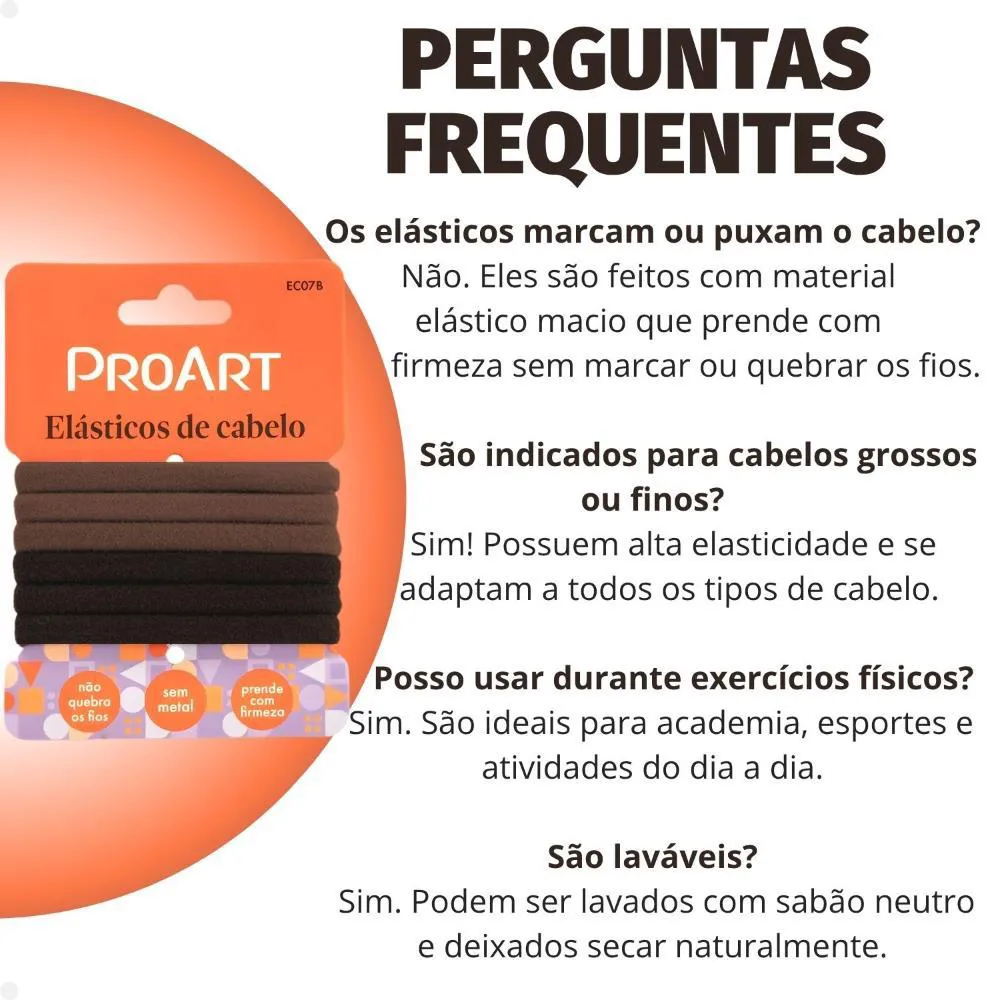 Os Elásticos de Cabelo Proart Pequeno EC07B são ideais para prender pequenas mechas, tranças, penteados delicados ou infantis com praticidade e conforto. Fabricados com material elástico resistente e de alta qualidade, proporcionam firmeza sem puxar, marcar ou quebrar os fios. Compactos e versáteis, são perfeitos para o uso diário e para quem busca acessórios discretos, eficientes e duráveis.Benefícios Principais