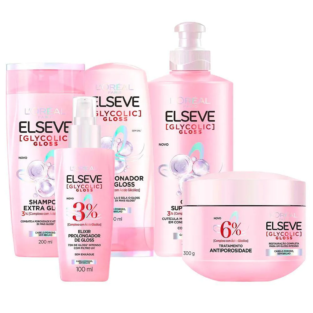 Elseve Glycolic Gloss Kit - Shampoo + Condicionador + Creme Super Gloss + Creme de Tratamento + Sérum