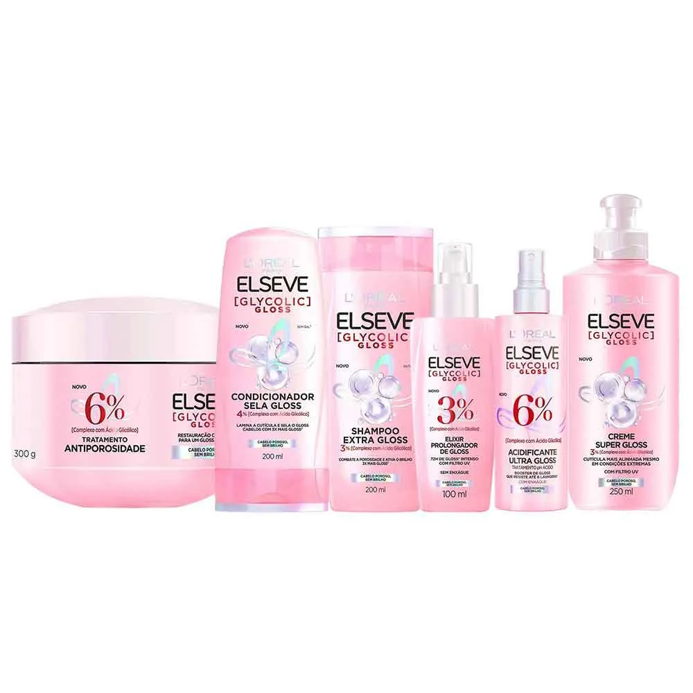 Elseve Glycolic Gloss Kit - Shampoo + Condicionador + Creme Super Gloss + Sérum + Tratamento + Creme Antiporosidade