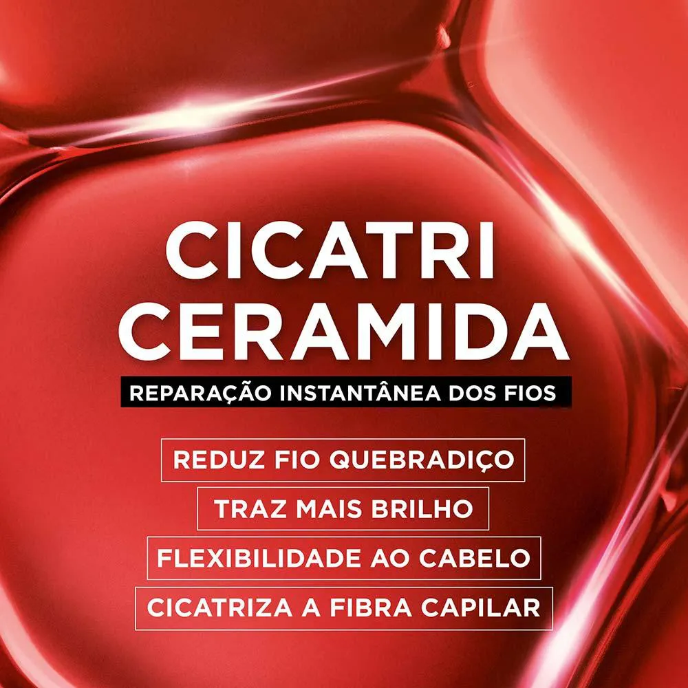 Enriquecida com Cicatri-Ceramida, a fórmula age nas cutículas dos cabelos, repondo os nutrientes perdidos e reparando profundamente a fibra. Um produto completo para os cabelos.