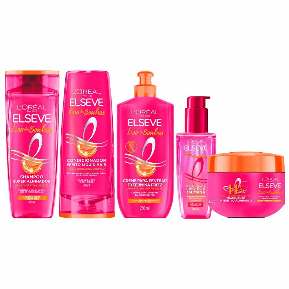 Elseve Liso dos Sonhos Kit - Condicionador + Shampoo + Máscara Capilar + Creme para Pentear + Sérum Leave-In