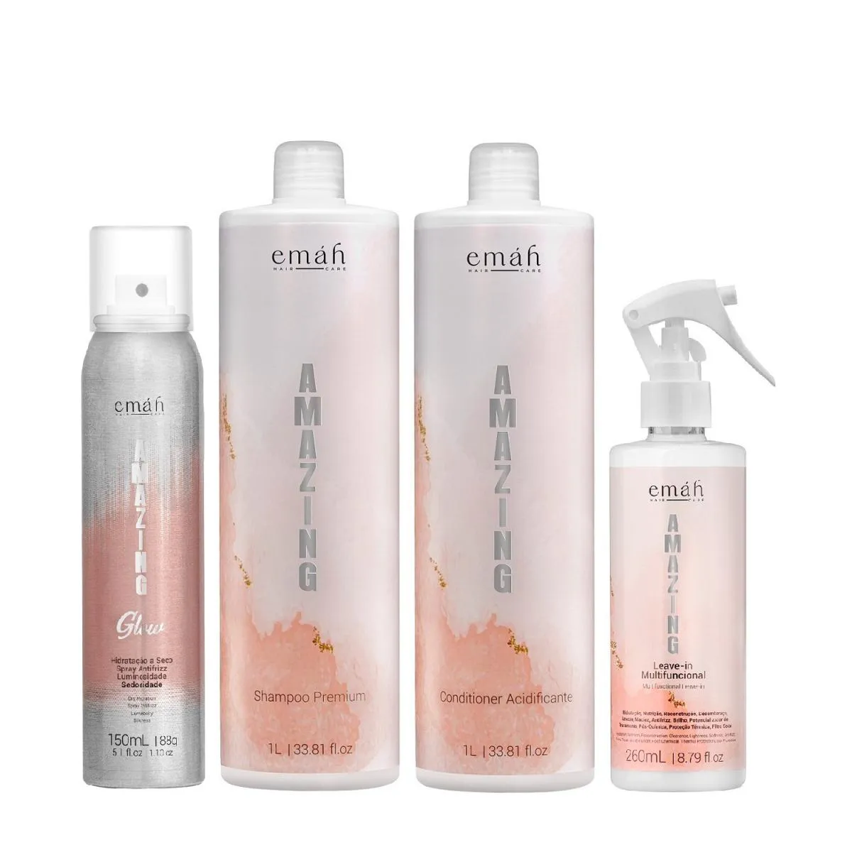 Emáh Amazing - Shampoo 1l + Condicionador 1l + Leave-in Multifuncional 260ml + Spray Antifrizz 150ml