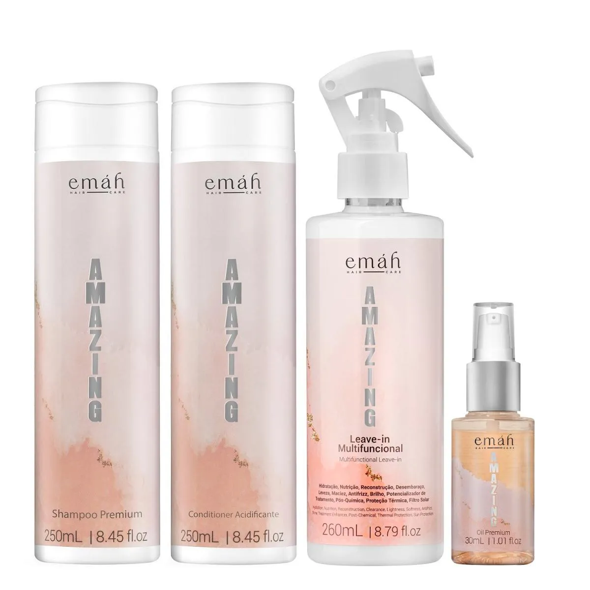Emáh Amazing - Shampoo 250ml + Condicionador 250ml + Leave-in Multifuncional 260ml + Óleo Premium 30ml
