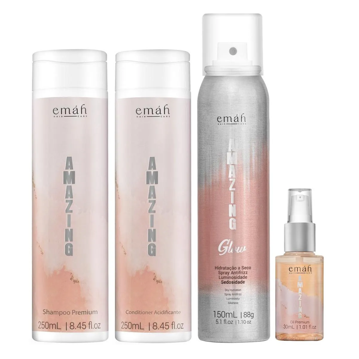Emáh Amazing - Shampoo 250ml + Condicionador 250ml + Spray Antifrizz 150ml + Óleo Premium 30ml