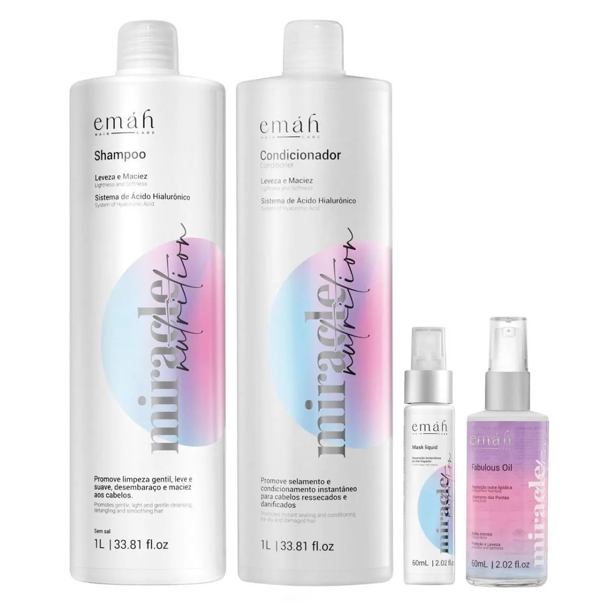 Emáh Miracle Nutrition - Shampoo 1l + Condicionador 1l + Máscara Líquida 60ml + Óleo 60ml