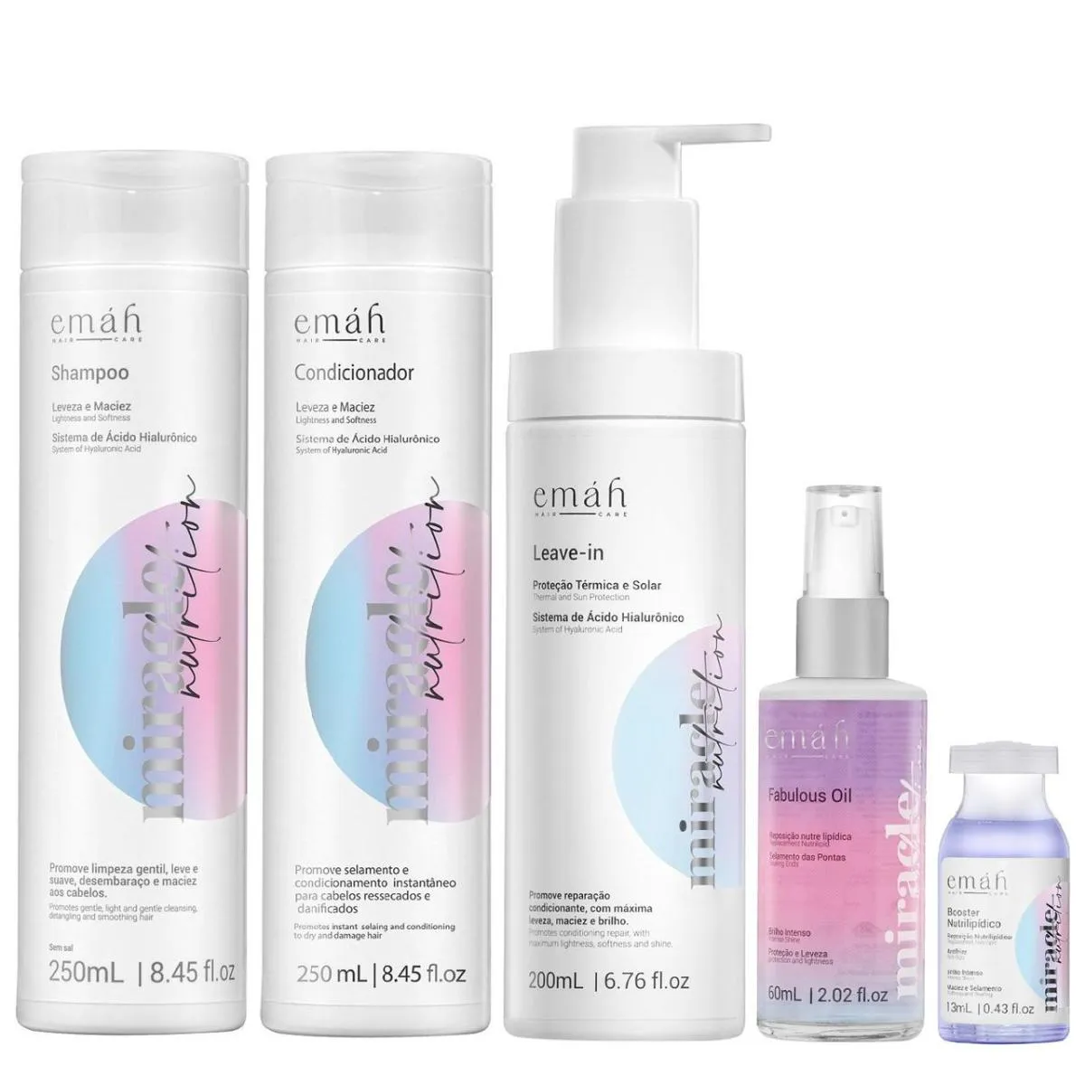 Emáh Miracle Nutrition - Shampoo 250ml + Condicionador 250ml + Leave In 200ml + Óleo 60ml + Ampola 13ml