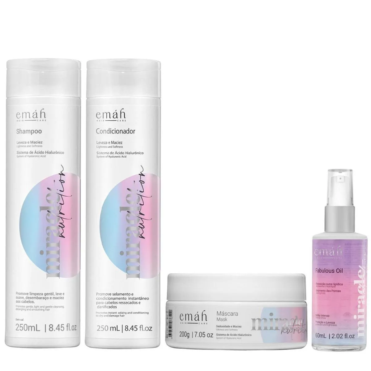 Emáh Miracle Nutrition - Shampoo 250ml + Condicionador 250ml + Máscara 200ml + Óleo 60ml