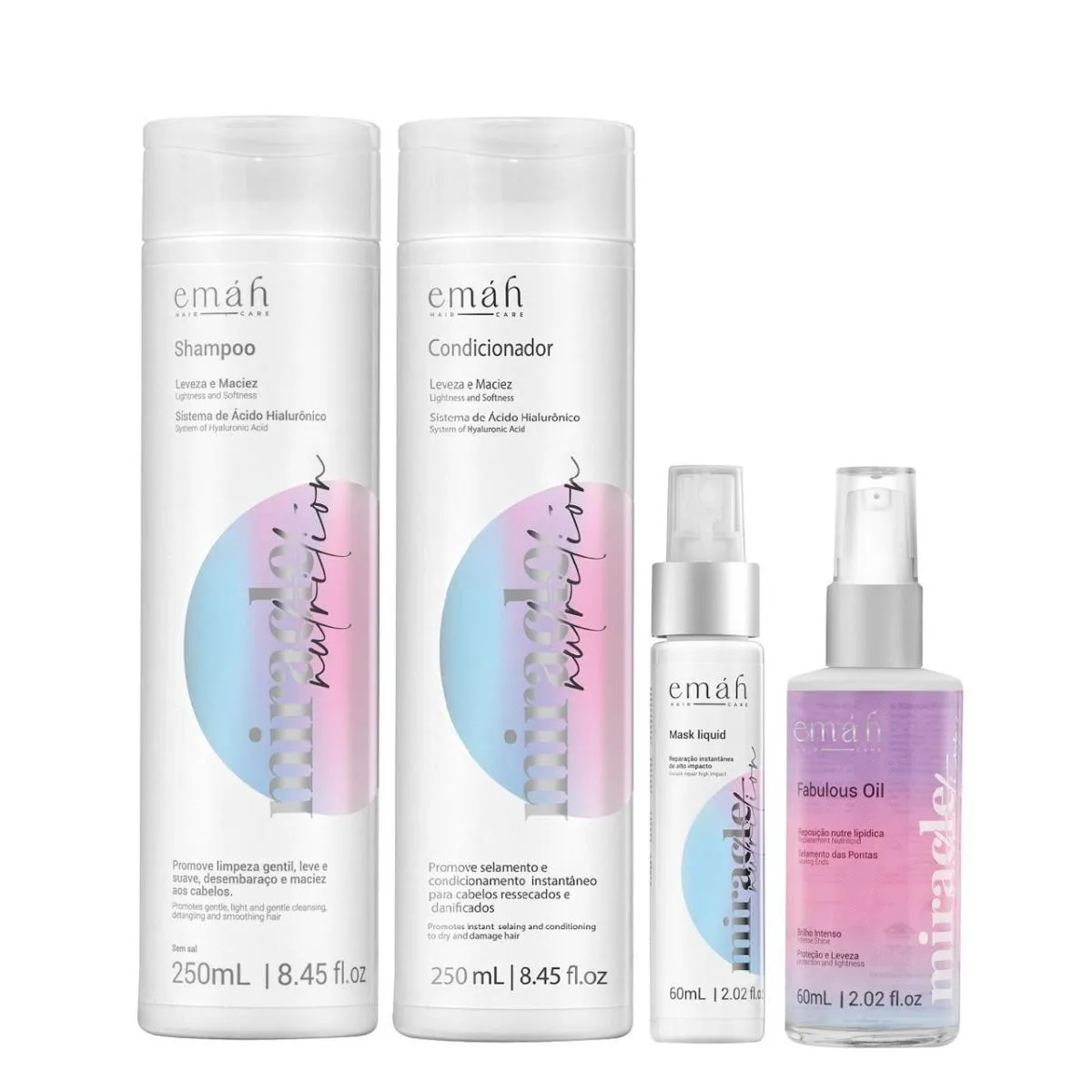 Emáh Miracle Nutrition - Shampoo 250ml + Condicionador 250ml + Máscara Líquida 60ml + Óleo 60ml
