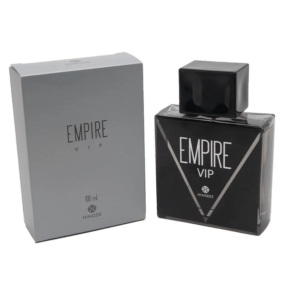 A Fragrância Masculina Empire Vip Hinode é composta por um leve aroma metalizado, que traz muito frescor, com notas cítricas e um ar levemente apimentado. A linha Empire foi especialmente desenvolvida para o homem de atitude, bem-sucedido e que sabe onde quer chegar. O Empire Vip traduz em sua fragrância todo o sucesso de um homem exclusivo e decidido.