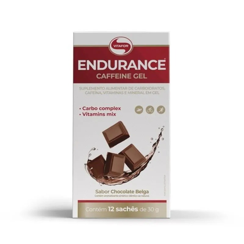 Endurance Caffeine Gel (360g - 12 Saches) - Vitafor Endurance Caffeine Gel da Vitafor é um suplemento em gel, e carboidratos, cafeína, vitaminas e mineral em gel que tem como diferenciais um Blend de carboidratos, vegano, 60mg de sódio por porção (sabor chocolate belga), 57mg de sódio por porção (sabor mocha), Consistência mais fluida para facilitar o consumo e 75mg de cafeína por porção! O Endurance Caffeine Gel é ideal para alcançar seus objetivos e te levar mais longe! Ciclistas, nadadores, maratonistas, lutadores, jogadores de futebol, praticantes de musculação e tantos outros esportistas se beneficiam desta formulação. Ao ingerir antes ou durante o treino, o endurance Caffeine Gel proporciona energia para exercícios de longa duração. Benefícios:* A cafeína auxilia no aumento do estado de alerta e na melhora da concentração;* A vitamina c e o selênio são antioxidantes que auxiliam na proteção dos danos causados pelos radicais livres;* A vitamina C, vitamina B6, vitamina B12 e o selênio auxiliam no funcionamento do sistema imune;* A niacina (vitamina B3), a vitamina B6, vitamina B12 e a vitamina C auxiliam no metabolismo energético;* A niacina (vitamina B3), a vitamina B6 e a vitamina B12 auxiliam no metabolismo de proteínas, carboidratos e gorduras e a vitamina C auxilia no metabolismo de proteínas e gorduras;* A vitamina C auxilia na formação do colágeno, na absorção de ferro dos alimentos e na regeneração da forma reduzida da vitamina e;* A vitamina B6 auxilia no metabolismo de proteínas e do glicogênio e na síntese de cisteína;* A niacina (vitamina B3) contribui para a manutenção da pele e auxilia na manutenção de mucosas;* Vegano;* Consistência mais fluida para facilitar o consumo;* Prático na versão em sachês para utilização durante os exercícios;* Excelente sabor;* Possui excelentes fontes de carboidratos, como a D-ribose, um carboidrato de rápida absorção.