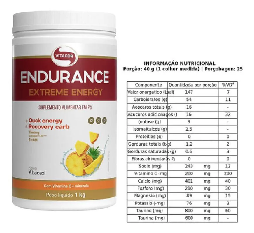 O Endurance Extreme Energy da Vitafor é um suplemento alimentar em pó formulado para fornecer energia rápida e auxiliar na recuperação muscular durante e após atividades físicas intensas.