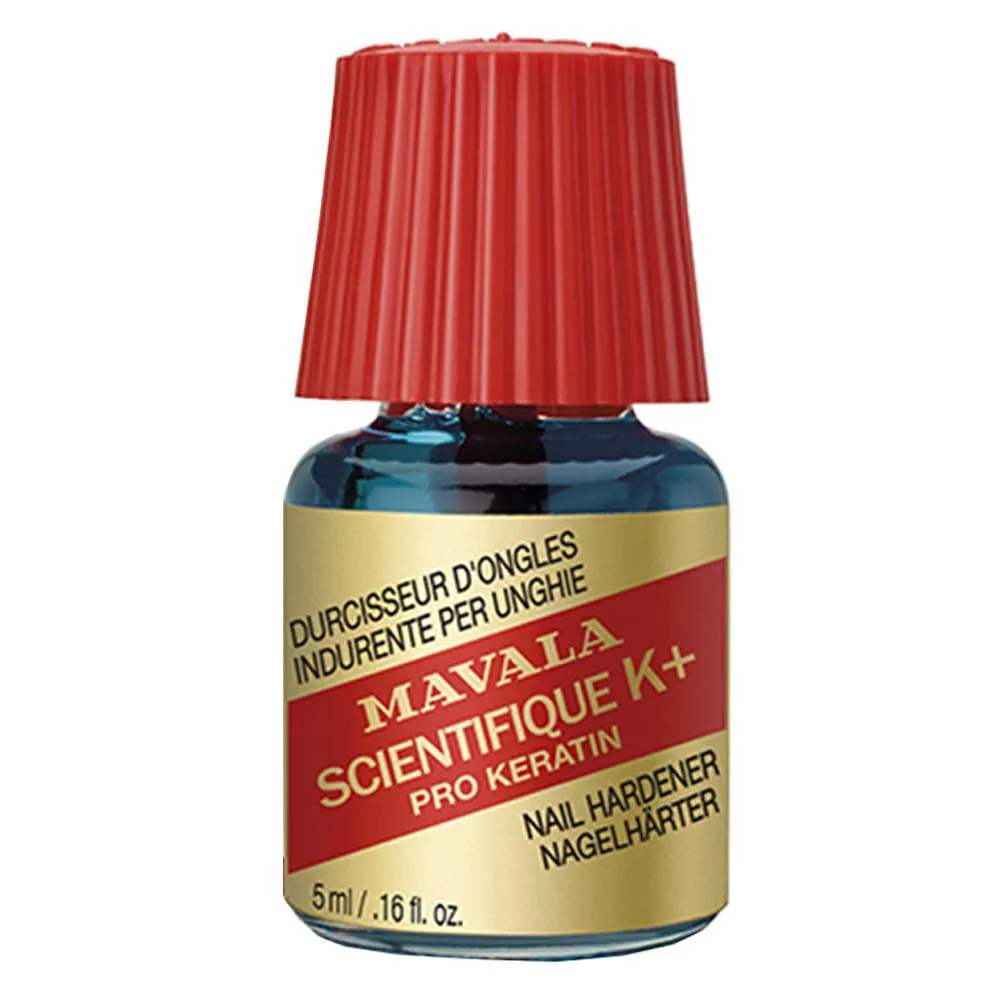 MAVALA SCIENTIFIQUE K +, com sua fórmula inovadora, endurece a unha graças a um científico ingrediente ativo que melhora a junção das fibras de queratina, componente principal das unhas, permitindo selar suas três principais camadas. Esta solução líquida e penetrante endurece as unhas, e evita que se quebrem ou descamem.
