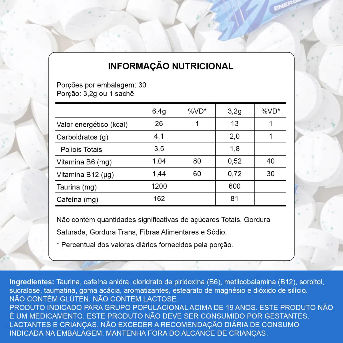 Energético em Bala Sabor Menta, 30 Saches 02 Balas - Dot