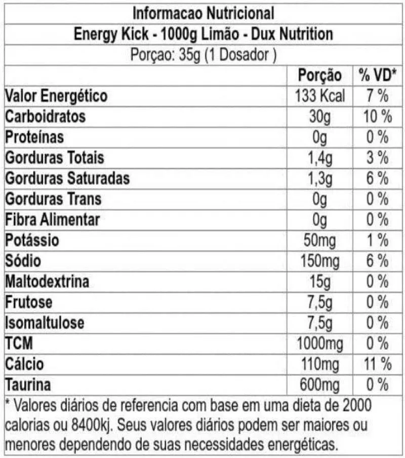 ENERGY KICK COM CAFEINA LIMãO DUX 1 KG