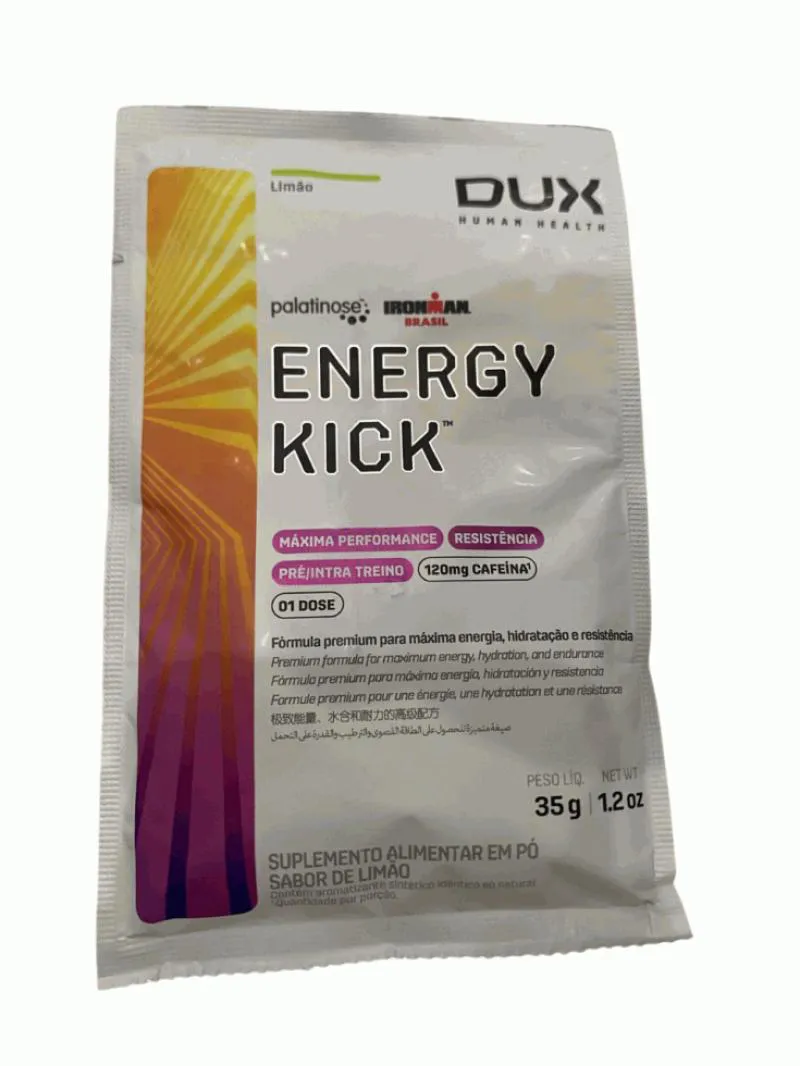 Energy Kick com Palatinose Sachê (35g) O que é Energy Kick DUX Energykick™ é um pré e intra treino para esportes de alta performance, que oferece um aporte imediato e duradouro de energia, para resultados superiores em treinos e competições. Sua fórmula contém diferentes tipos de carboidratos, proporciona maior resistência física com TCM (triglicerídeos de cadeia média), auxilia o foco com taurina, e promove a hidratação com uma mistura excepcional de carboidratos. Mecanismos de Ação 1 e 2 - Alta disponibilidade energética, por até 30 minutos, originada por carboidratos de três fontes distintas: Palatinose, Frutose, Maltodextrina, e 1.000mg de TCM (triglicerídeos de cadeia média);- Os carboidratos são simultaneamente absorvidos por diferentes sistemas do organismo (intestino delgado, grosso e estômago), enquanto o TCM é digerido em velocidade menor. Mecanismos de Ação 3, 4 e 5 - O TCM aumenta a utilização de gordura como fonte energética e é absorvido mais lentamente, mantendo a resistência física quando os níveis de energia dos carboidratos estiverem acabando;- Taurina: 600mg para aumentar o foco, e dar suporte a diversas funções críticas do corpo;- Combinação equilibrada e completa de eletrólitos com múltiplas funções. Fórmula Limpa e Funcional- Fórmula avançada, desenvolvida para esportes de alto rendimento como triathlon, ciclismo, corrida, lutas, Crossfit® e powerlifting;- Produto vegano, feito com corantes naturais funcionais e adoçado com stévia;- Sem substâncias ilícitas, lactose, ingredientes modificados geneticamente ou qualquer ingrediente inferior. Apresentação da Linha Xtamina™ é uma linha especial da DUX®, desenvolvida por uma equipe médica especializada em esportes de alto rendimento, liderada pelo Dr. Gustavo Magglioca. Os produtos da linha dão suporte aos três principais momentos do atleta de alto rendimento:- Hidratação;- Energia;- Recuperação.