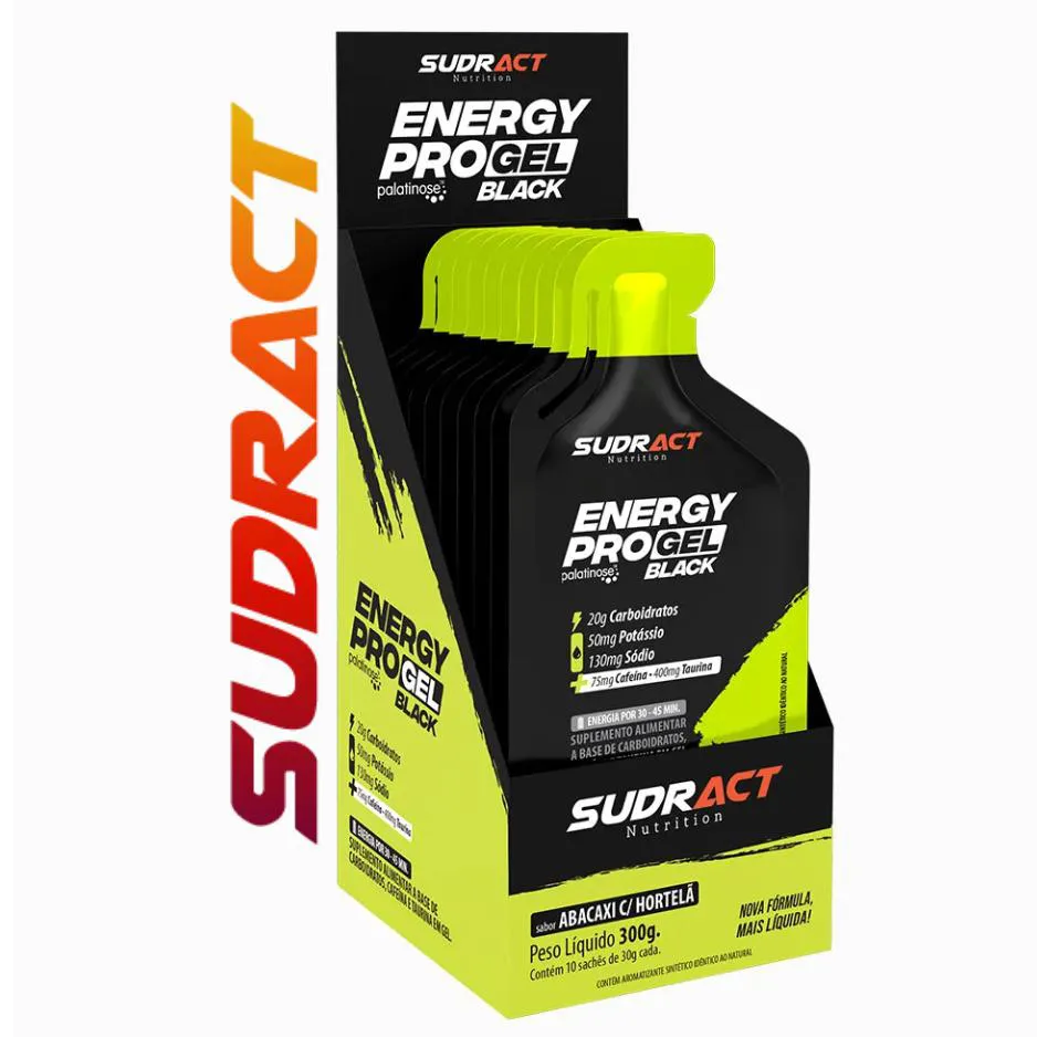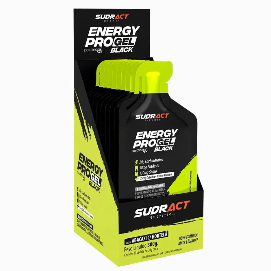 Energy Pro Gel Black Sudract Caixa (10 Saches 30G) - Sabor Abacaxi C/ Hortela