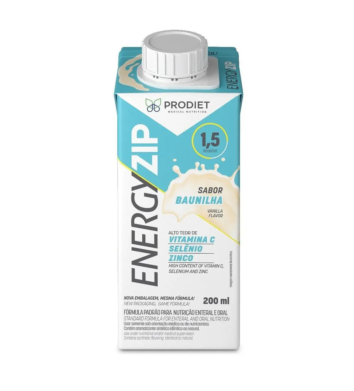 Suplemento nutricional líquido sabor baunilha com proteínas, vitaminas e minerais. Energyzip Baunilha - Frasco 200ml O Energyzip Baunilha é um suplemento alimentar líquido pronto para beber, indicado para complementar a alimentação de adultos e idosos. Sua fórmula contém proteínas, carboidratos, fibras, vitaminas e minerais que auxiliam na reposição de energia, suporte nutricional e manutenção do equilíbrio da dieta diária. Por ser pronto para consumo, oferece praticidade para ingestão entre refeições ou em situações em que há ingestão alimentar reduzida. Advertências Este produto não é medicamento. Não substitui uma alimentação equilibrada e hábitos de vida saudáveis. Contém derivados de leite. Conservar em local seco e fresco. Após aberto, manter refrigerado e consumir em até 24 horas.