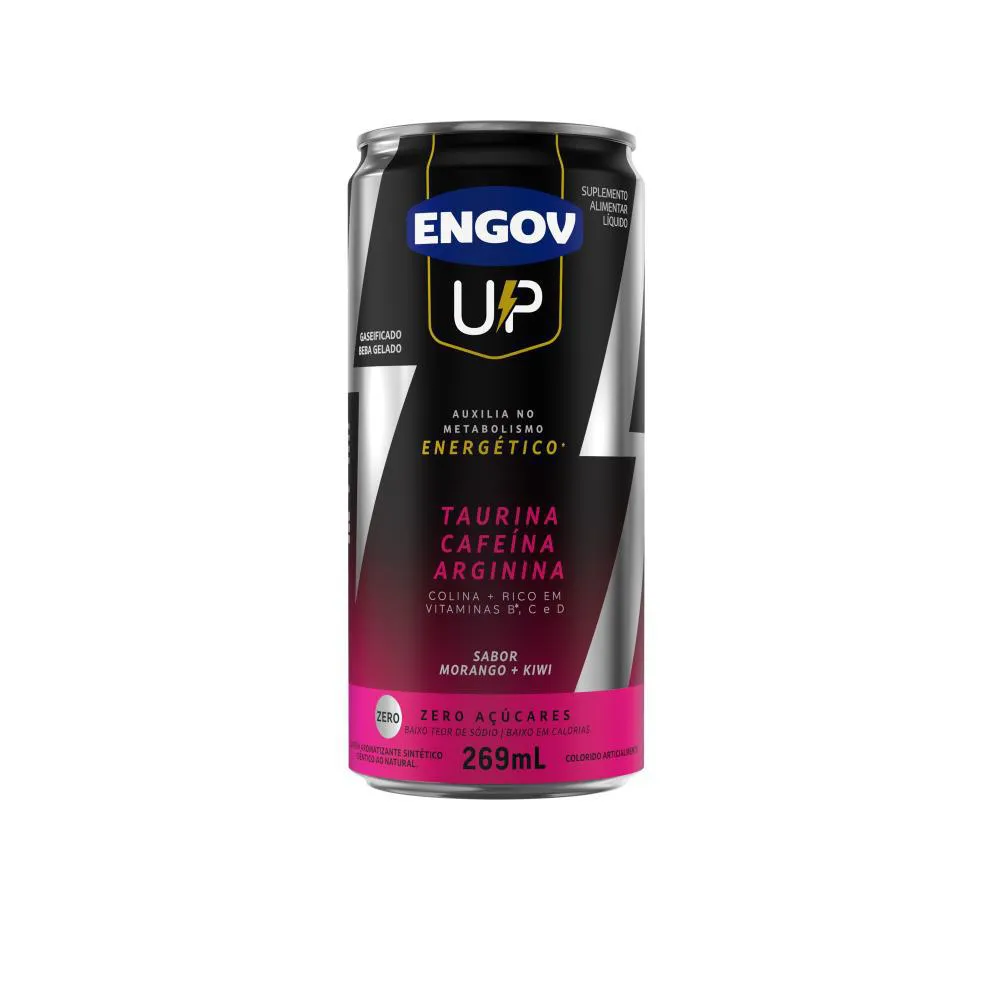 Engov UP é uma bebida gaseificada, em lata com 269 ml, para dar energia! Sua formulação com a tríade Taurina, Cafeína e Arginina, além de vitaminas do complexo B, C e D e Colina. É zero açúcares, baixo teor de sódio e baixo em caloria.Com a tríade Taurina, Cafeína e Arginina, essa bebida auxilia no metabolismo energético aumentando a energia e concentração.
