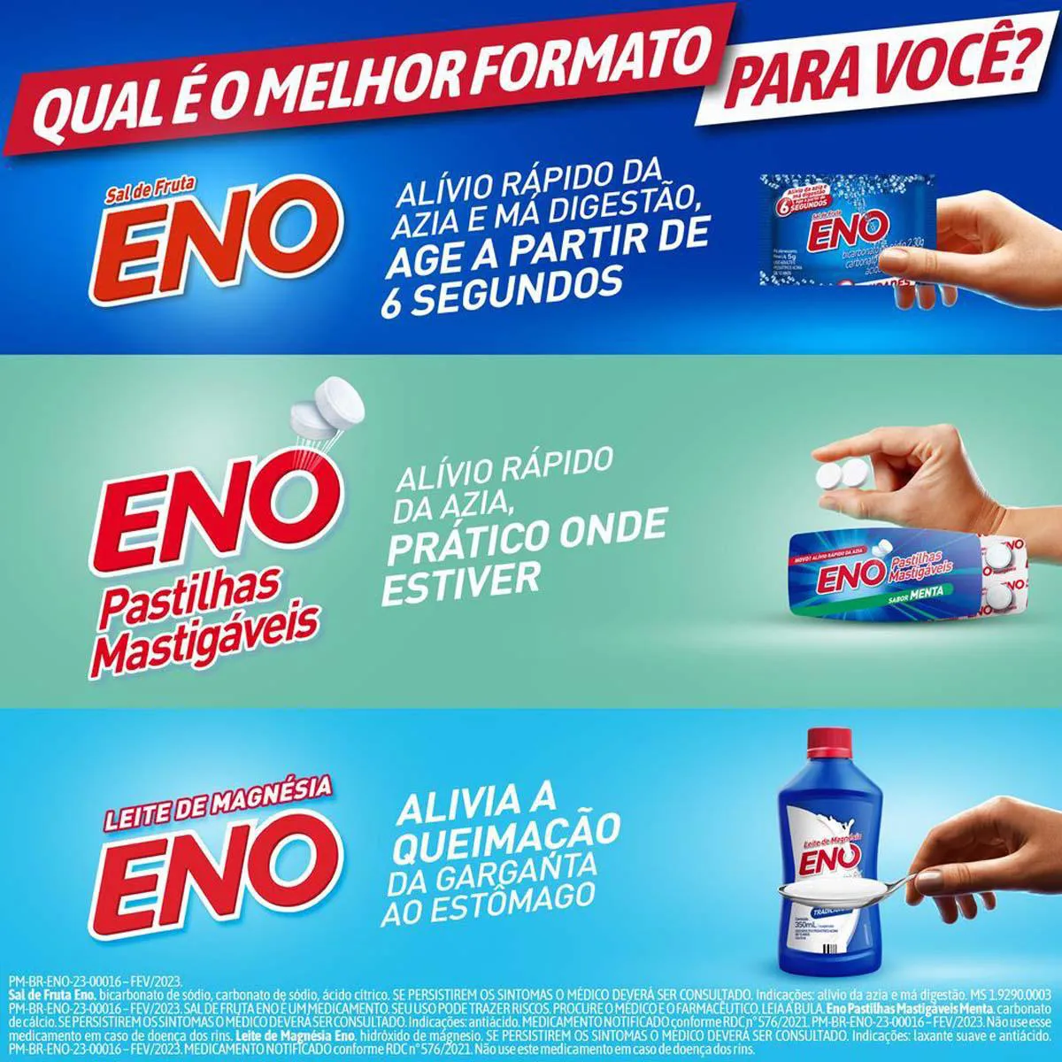Eno Sal de Fruta é um antiácido indicado para auxiliar na azia, má digestão e outros transtornos estomacais, tais como excesso de acidez do estômago e indigestão ácida.