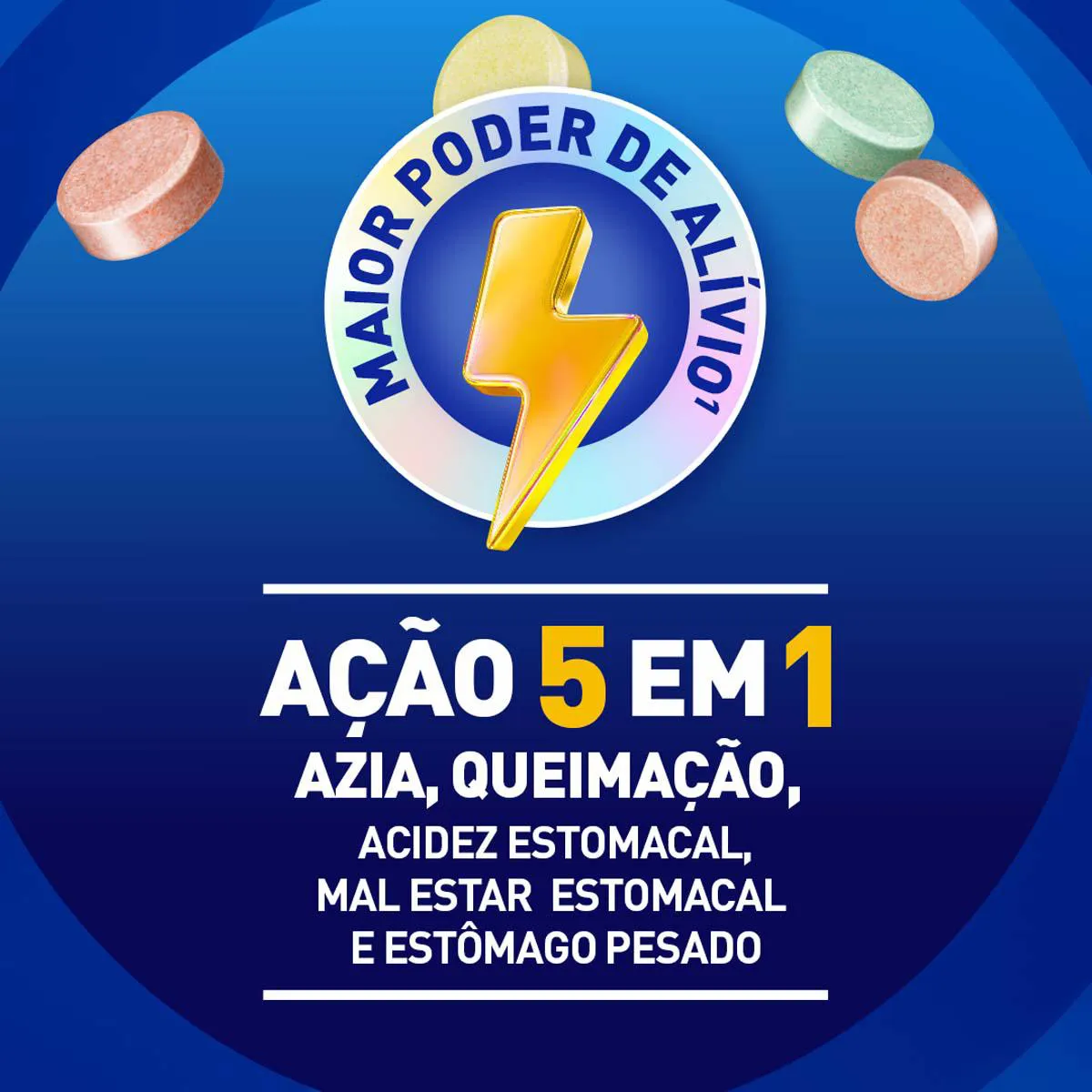 É um antiácido com sabor de frutas sortidas, indicado para o alívio de azia, má digestão e outros transtornos estomacais, tais como excesso de acidez do estômago e indigestão ácida.