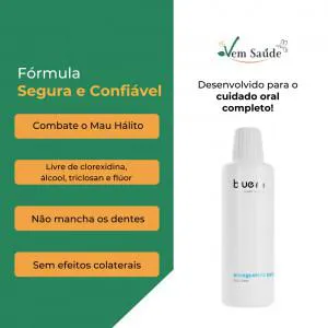 Fórmula livre de álcool, clorexidina, triclosan e flúor eliminando riscos de irritação, manchamento ou desequilíbrio da flora oral