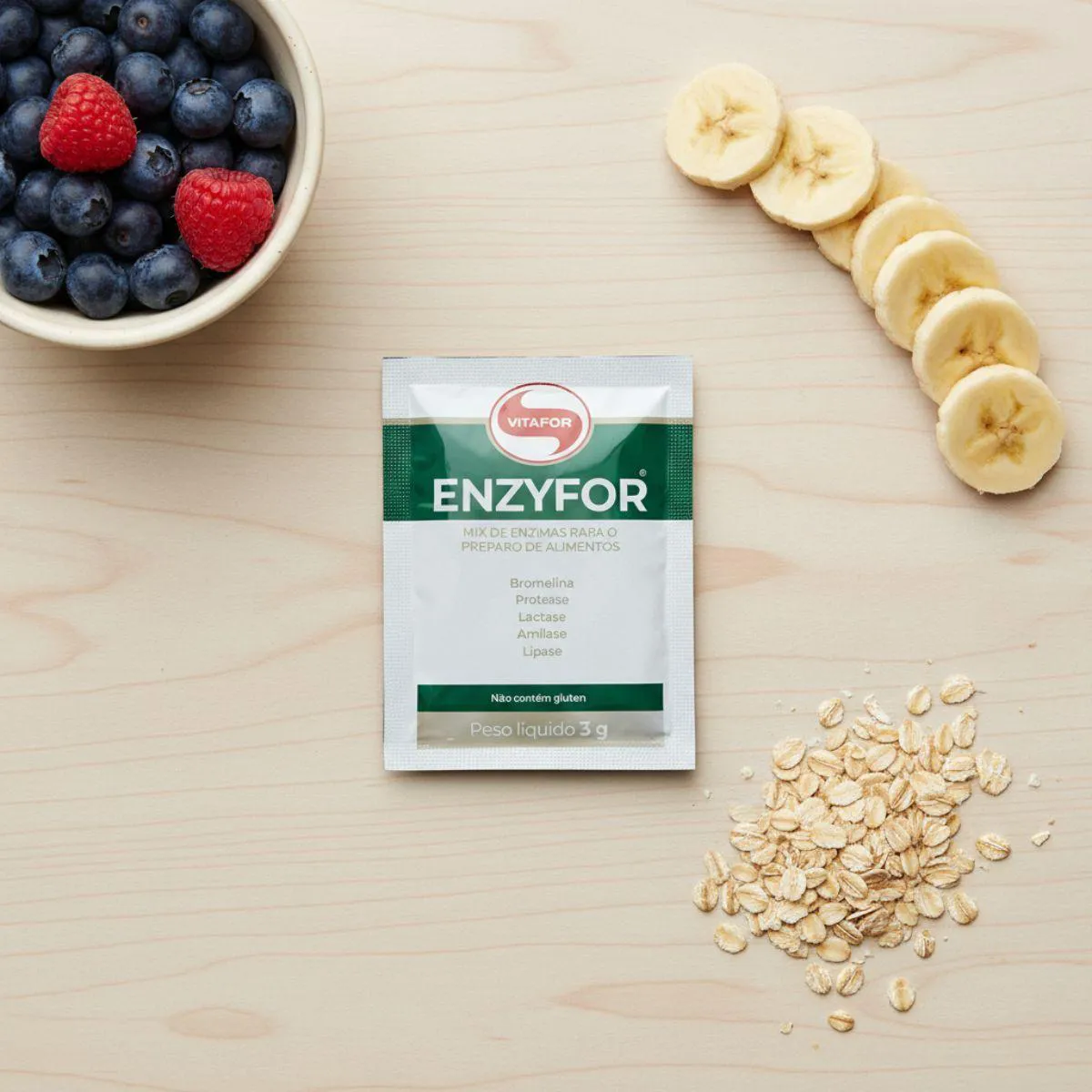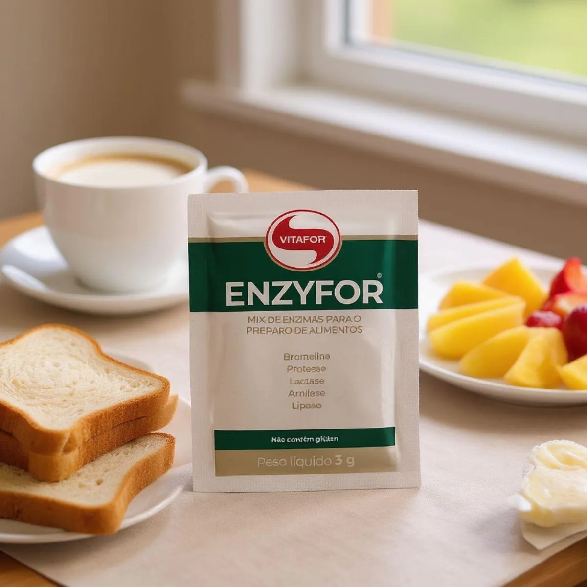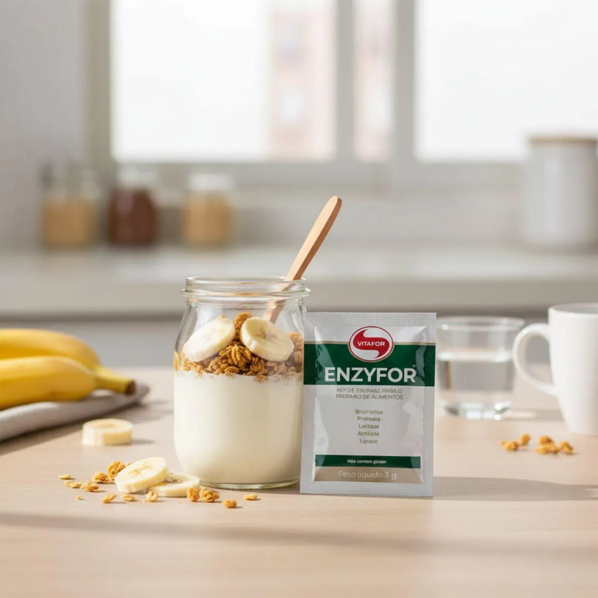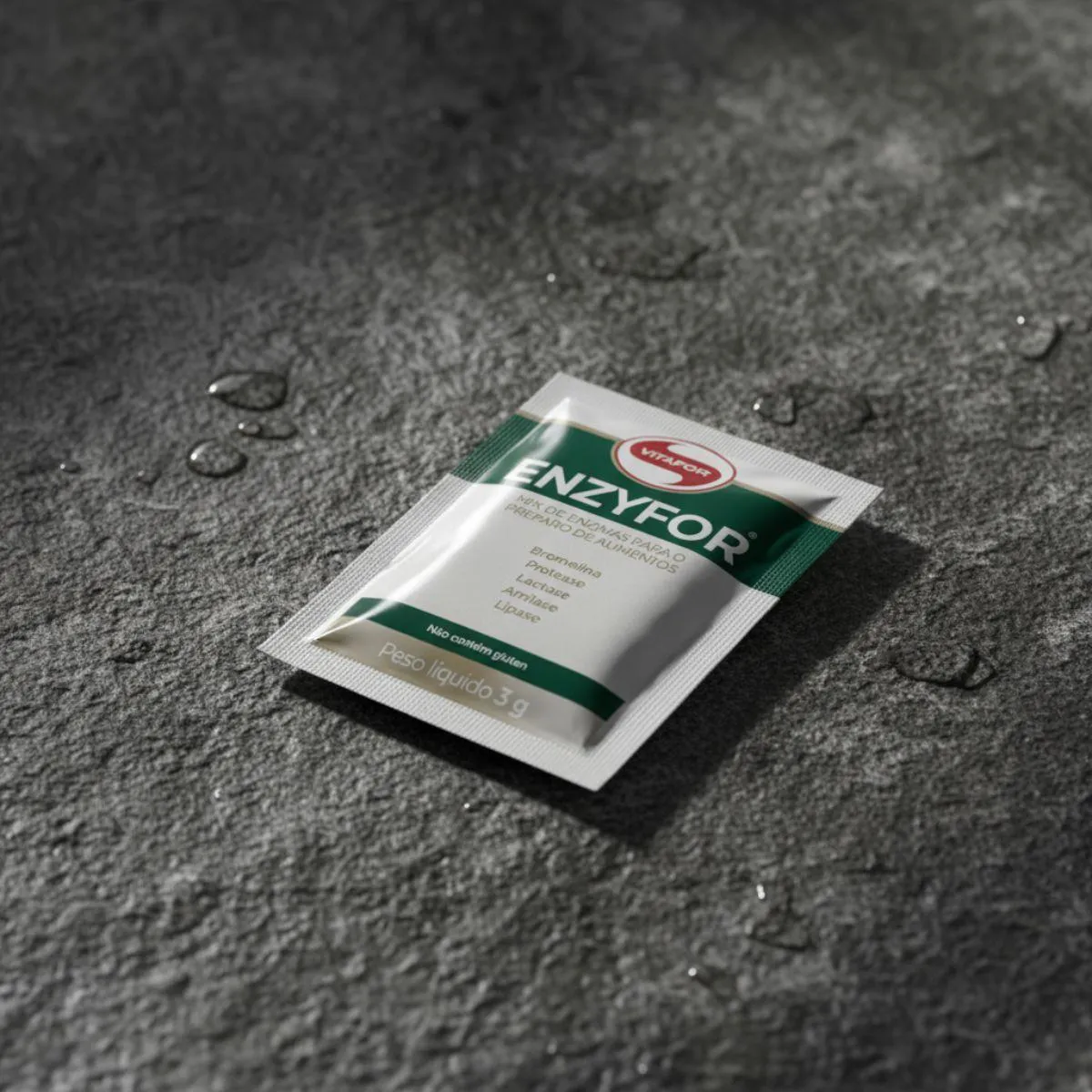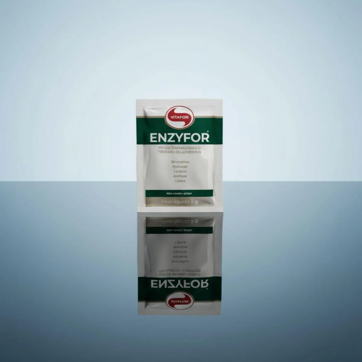 A composição do Enzyfor reúne diferentes enzimas alimentares, registradas no rótulo de forma objetiva. A Vitafor adota padrões rigorosos de controle interno, garantindo a padronização da matéria-prima e a qualidade que caracteriza a marca. A fórmula é enxuta e contém apenas os ingredientes essenciais, permitindo compreensão clara sobre o conteúdo do sachê e reforçando a transparência na comunicação.