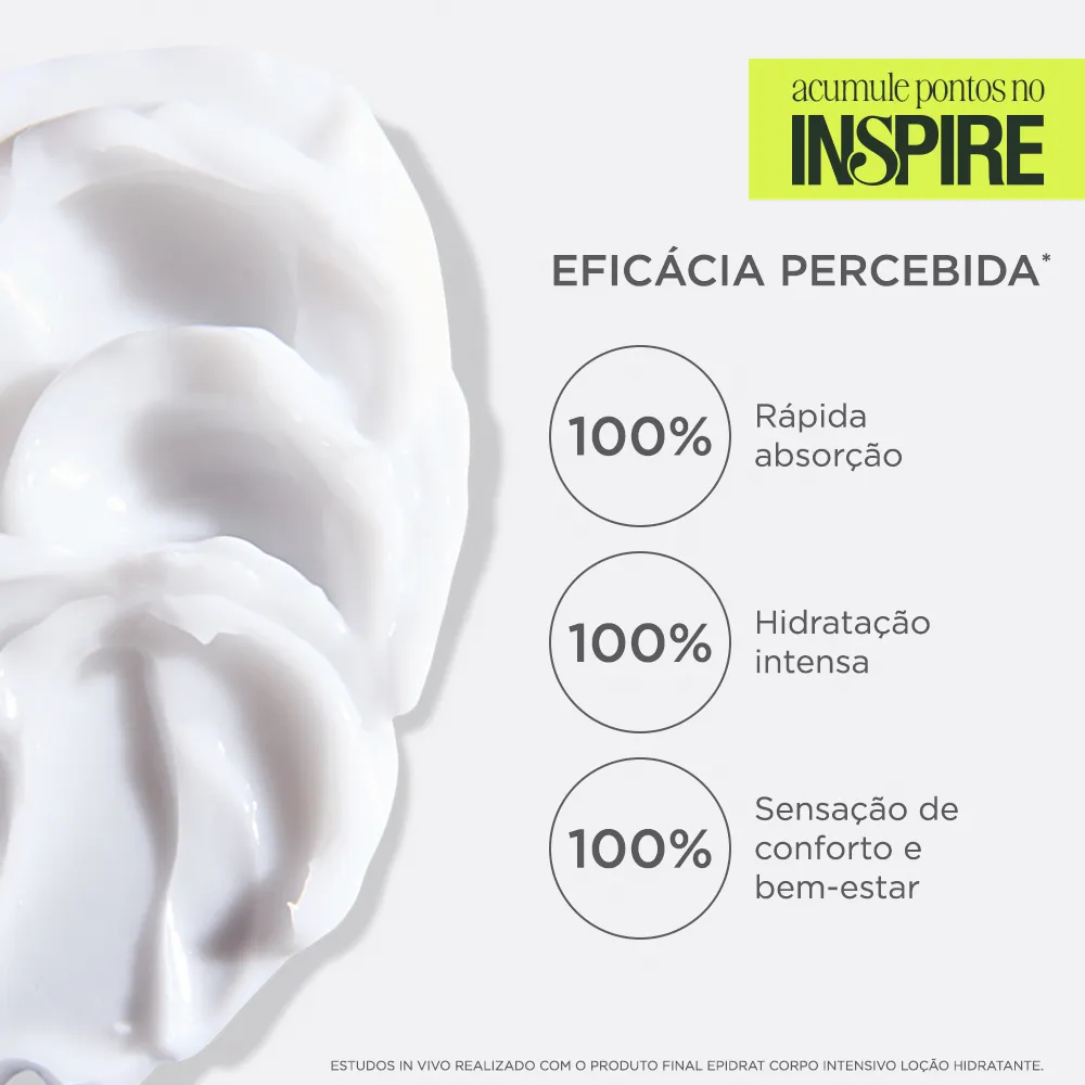 O Epidrat Corpo Intensivo é um hidratante corporal em loção, desenvolvido especialmente para peles secas e sensíveis, com uma fórmula que contém ceramidas e ácido hialurônico. Sua textura é fluida e de rápida absorção.
