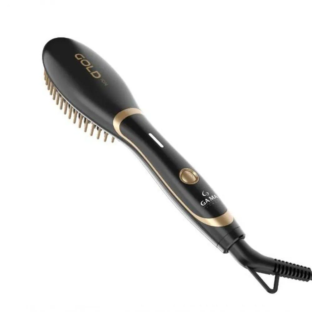 Escova Alisadora Gold Ion Mini Italy Bivolt A escova alisadora Gold Ion Mini da Italy é ideal para quem busca pde, sendo compacta e fácil de transportar. Com cerdas de pontas protetoras que deslizam suavemente, atinge até 220°C e distribui o calor de forma homogênea, enquanto seu cabo giratório e função bivolt facilitam o uso. Utiliza a tecnologia Essential Oil com óleo de Argan, rico em nutrientes que hidratam, nutrem e protegem os fios contra os danos do calor. A emissão de íons negativos reduz o frizz, mantendo a umidade l e proporcionando cabelos mais brilhantes, sedosos e saudá de Escova Alisadora Formato da Escova Pente Tecnologias Essential oilsCeramic IonBivolt Essential Oils As cerdas exclusivas com óleo de Argan. Os óleos essenciais são ricos em antioxidantes, s e agentes umidificadores, que promovem brilho e proteção para todos os cabelos. A tecnologia é ativada pelo calor emitido pelo produto. Ceramic Íon Tecnologia com alta emissão de íons negativos que tem como principal função reduzir o frizz do cabelo, proporcionando brilho e maciez, melhorando sua aparência e mantendo os fios mais saudáveis. Temperaturas 1 Temperatura Máxima 220 Emissão de Íon Sim Potência 43W-47W Cabo Giratório Sim Comnto do Cabo 2 Metros Dimensões do Produto 6cm x 4,5cm x 35cm (Largura x Altura x Comnto) Dimensões da Embalagem 150cm x 6cm x 31cm (Largura x Altura x Comnto) Peso 331g NA Cor: PRETO Voltagem: BIVOLT
