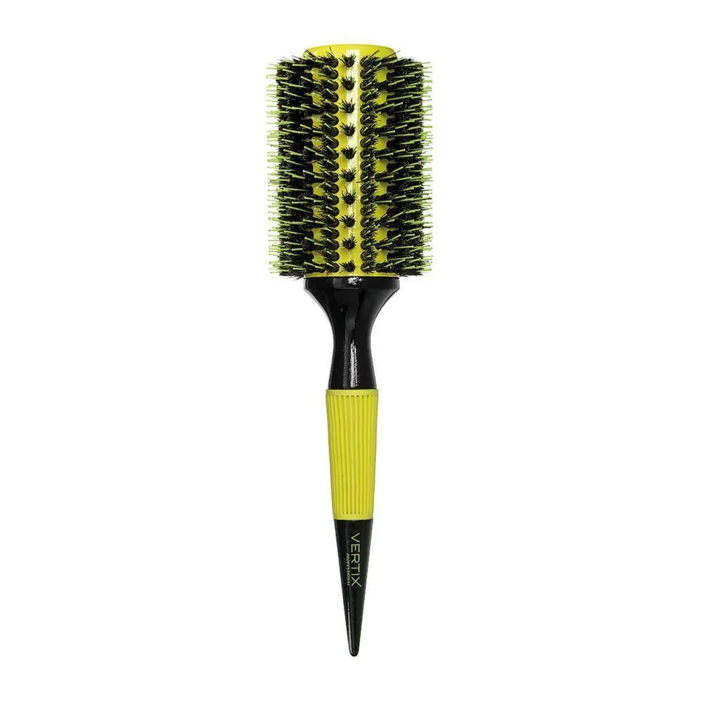 Escova redonda de madeira com base de cerâmica e cerdas naturais de javali intercaladas com pinos de nylon. A base de cerâmica retém o calor do secador por mais tempo, além de distribui-lo mais uniformemente. As cerdas e pinos proporcionam a tração ideal para cabelos mais volumosos e difíceis de penetrar. Ideal para alisamento de cabelos extra longos.