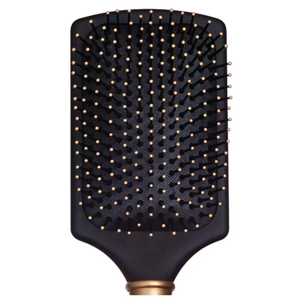 A escova de cabelo Black & Gold Racket da marca Belliz tem base de almofada que proporciona maior conforto no uso. Cerdas de nailon com pontas protetoras que não machucam e massageiam o couro cabeludo.