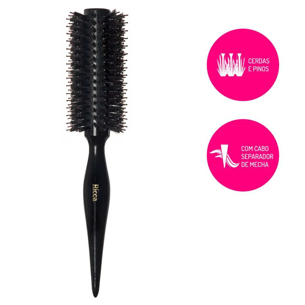 A Escova Madeira Black Porcupine 23 da marca Ricca é ideal para alisamento de cabelos de tamanho médio.