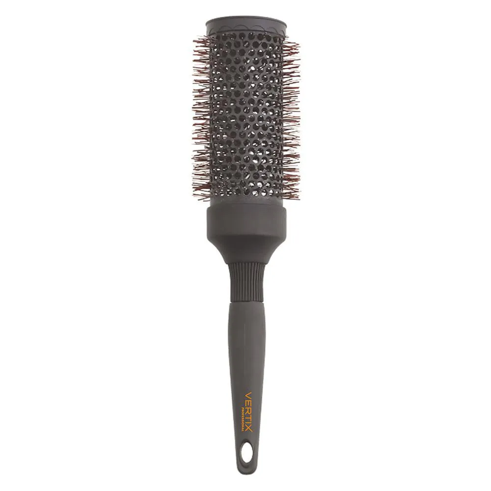 A escova de cabelo Nano Silver Hot Ion 43 da marca Vertix possui cerdas ionizadas que combatem o frizz no cabelo. corpo vazado que permite a passagem do ar do secador e aceleram o processo de transformação do cabelo. Base de cerâmica que retém e distribui o calor do secador com mais eficiência.