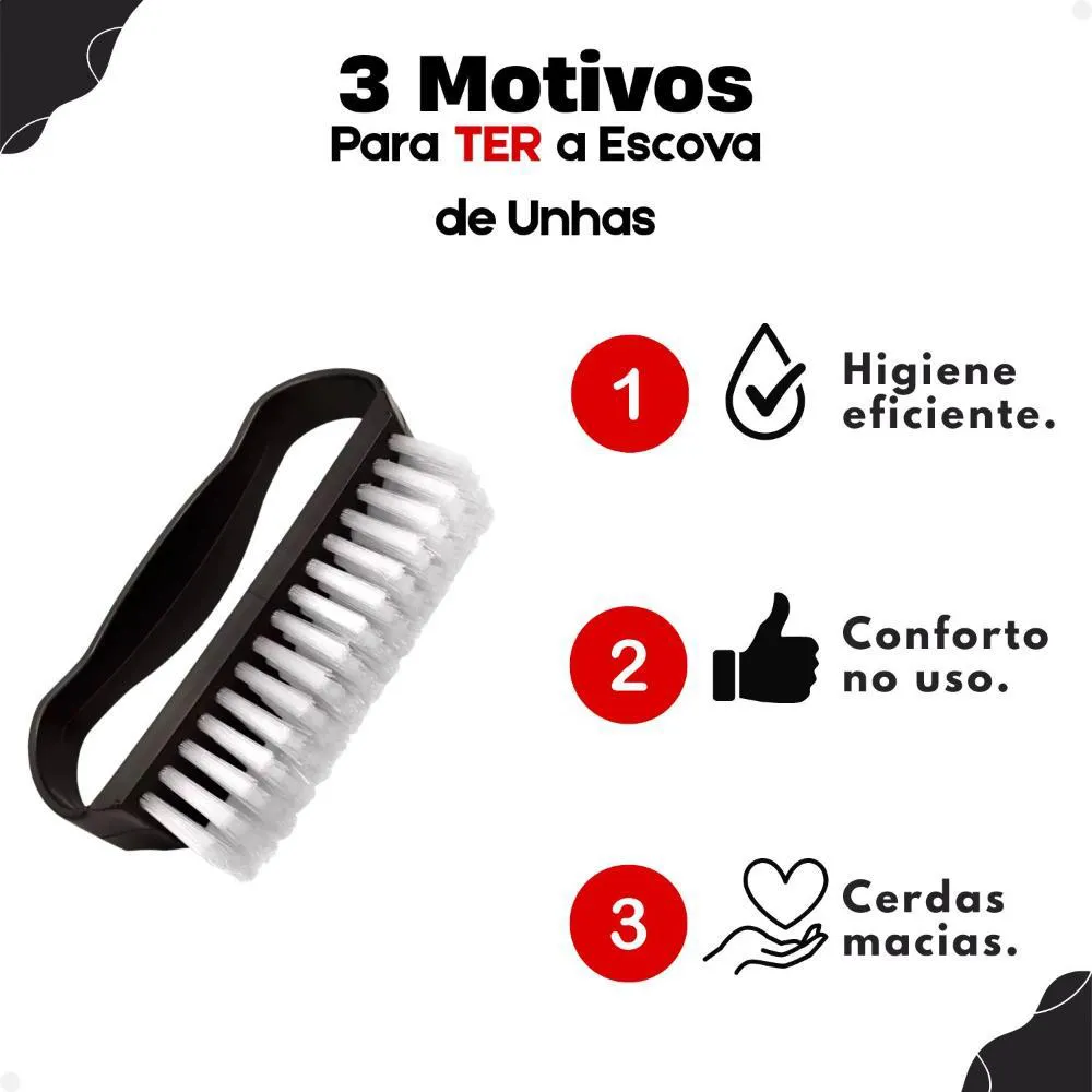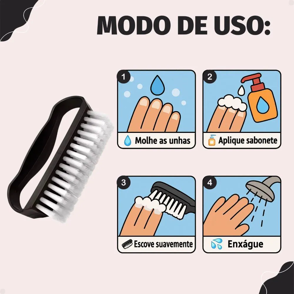 esmaltes ou decorações.Oferece um cabo anatômico e anti-deslizante, garantindo conforto e segurança durante o uso.Ferramenta indispensável para o cuidado diário, permitindo escovar e lavar as unhas com eficiência.