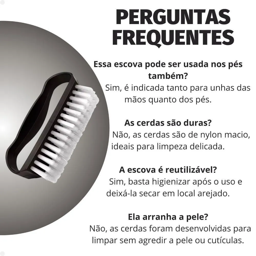 pés impecáveis, proporcionando um cuidado profissional no conforto da sua casa.Com cerdas de nylon de alta qualidade e um design funcional, esta escova não só promove uma limpeza profunda das unhas e cutículas, mas também é perfeita para a preparação de