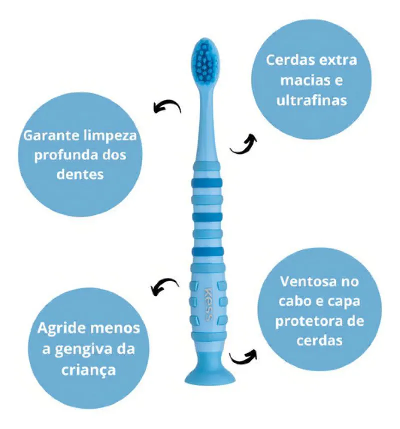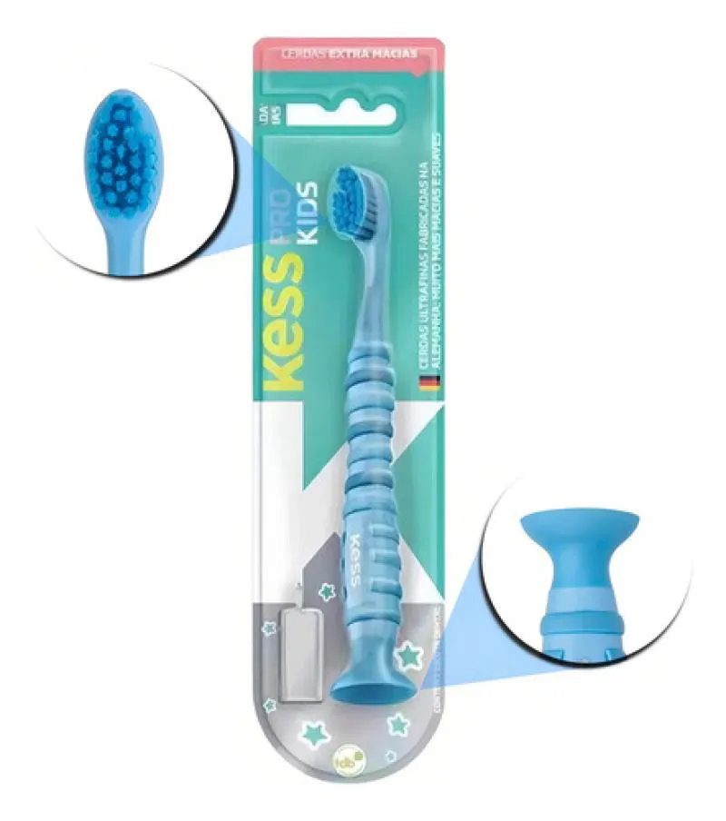 Escova Dental Azul Kess Pro Kids com Ventosa