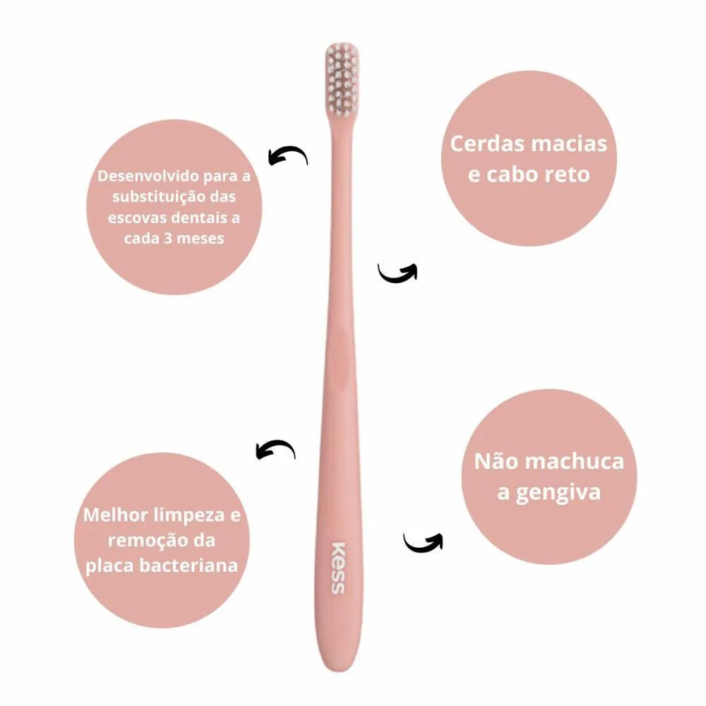 Escova Dental Basic Anual Os dentistas recomendam a substituição das escovas dentais a cada 3 meses. O Pack Anual Kess Basic vem com 4 escovas e foi desenvolvido para facilitar esse processo. . Tempo de Uso As escovas dentais devem ser substituídas a cada três meses após o início do uso ou conforme a orientação do dentista. Com o tempo, as cerdas perdem a flexibilidade, impossibilitando a higienização correta e ocasionando assim o acúmulo de placa bacteriana. . Composição Escova dental com cabo de material plástico, cerdas de nylon, âncoras metálicas. . Contém: -04 Escova dental. . ***ENVIADAS CONFORME A DISPONIBILIDADE DAS CORES