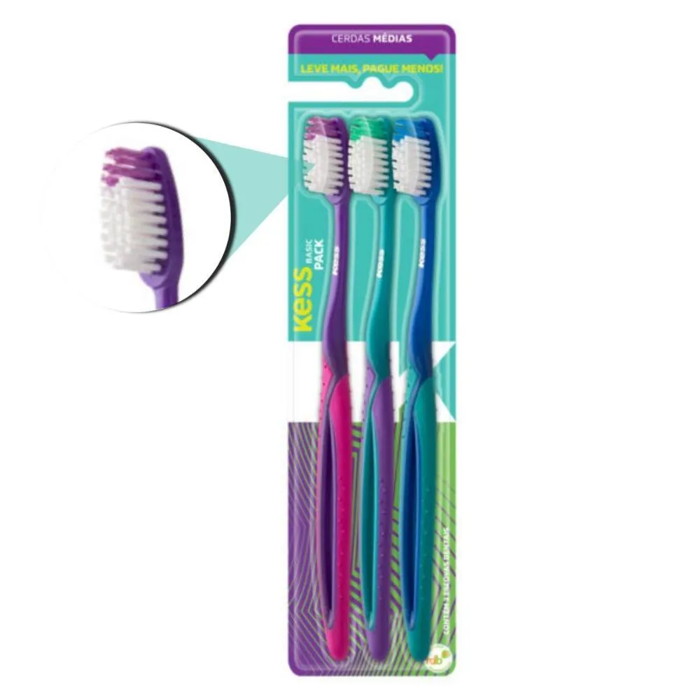 Escova Dental Kess Basic Plus Cerdas Médias C/3 Cód.2564