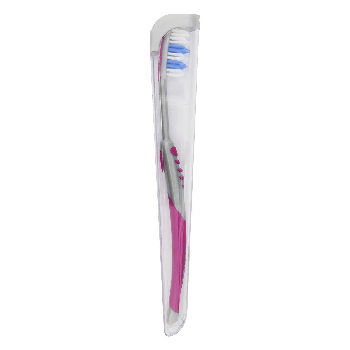 A única escova dental com íons de prata, proteção antibactéria total nas cerdas, cabeça, cabo, e estojo.