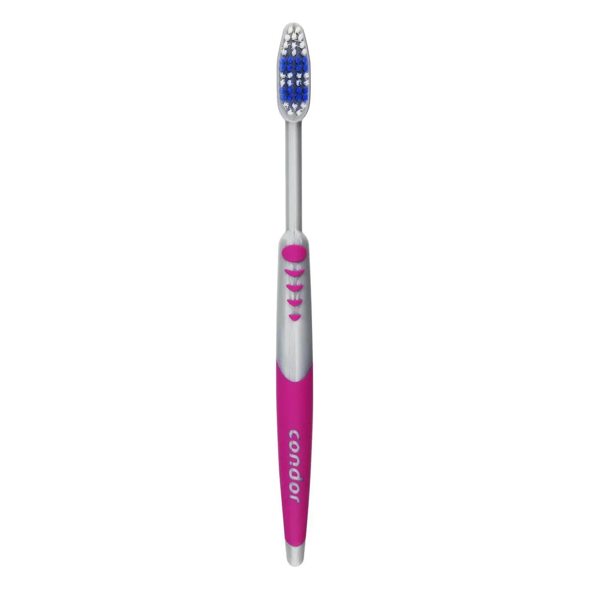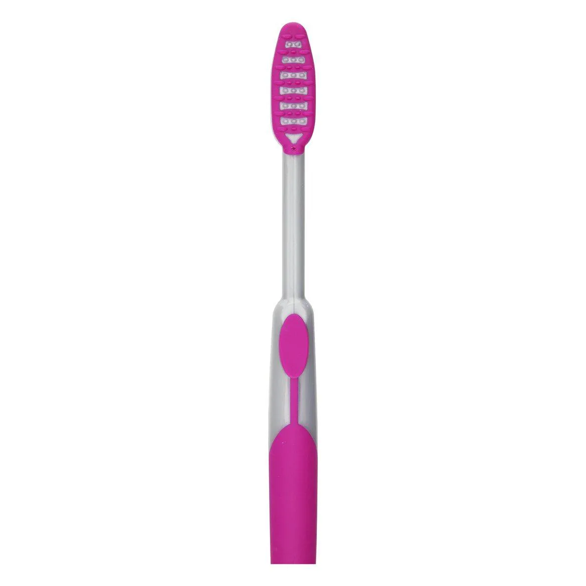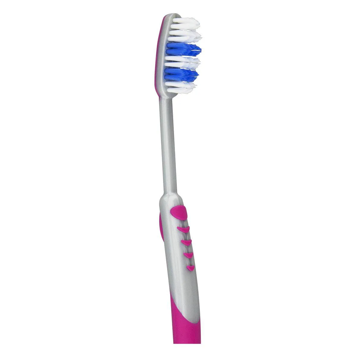 Com limpador de língua emborrachado e as cerdas em zig zag alcaçam melhor os espaços entre os dentes, proporcionando uma limpeza profunda.