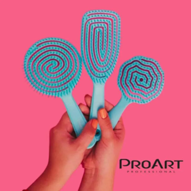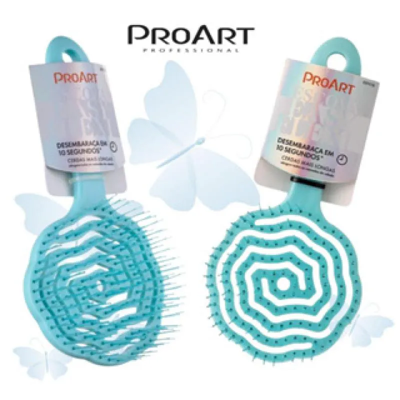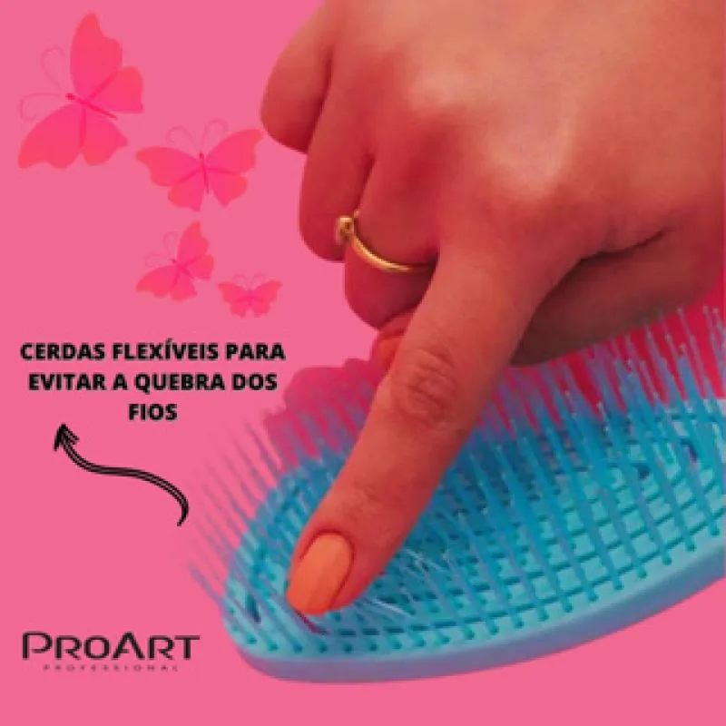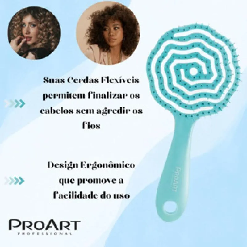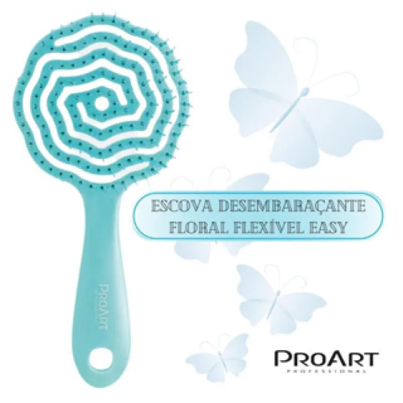 Escova Floral Redonda Proart Cerdas Flexíveis Desembaraçante Easy Azul