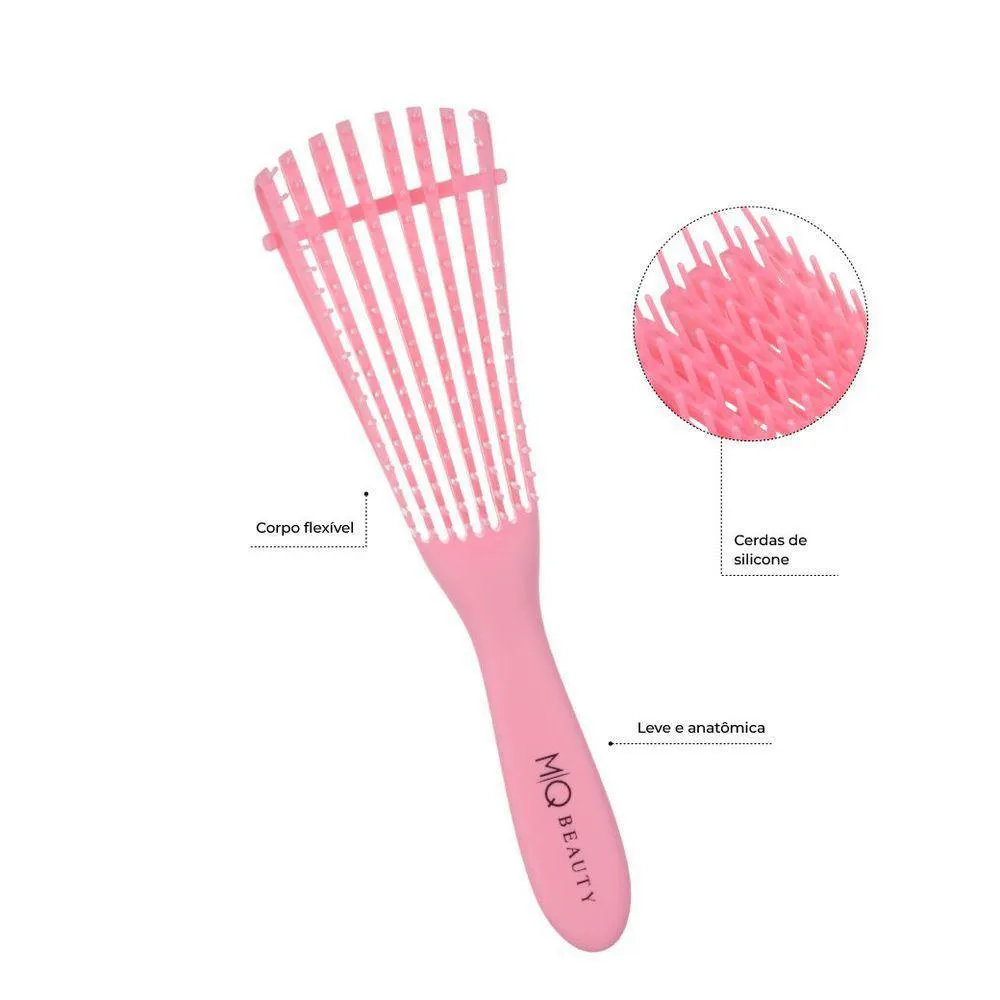 A marca mq beauty, apresenta seus mais novos produtos, escovas de cabelo altamente práticas, com a qualidade mq e a tecnologia necessária para resultados incríveis.Foi desenvolvida especialmente para desembaraçar cabelos cacheados e crespos, ainda úmidos. Desembaraçando e removendo os nós. Reduz a quebra e deixa os cabelos com aparência saudável. Perfeita para atender as necessidades desse tipo fio como: tempo de cuidado, quebra excessiva, encolhimento e frizz.A escova super flex com cerdas de silicone com seu design diferenciado proporciona firmeza e fácil manuseio, gerando menos tração nos fios molhados.Indicações de uso: Desenvolvida especialmente para pentear e desembaraçar cabelos cacheados e crespos. Recomendamos a utilização com os cabelos úmidos. Recomendamos que durante a utilização, a distância mínima entre o secador e a escova seja de 7cm.Características e diferenciais: Ideal para cabelos cacheados e crespos. Flexível: pode ser usada com dois espaçamentos, um ideal para desembaraçar e outro ideal para definição de cachos ou ondas. Escova super flexível com cerdas de silicone. Material que reduz a quebra, encolhimento e frizz. Gera menos tração nos fios. Design diferenciado que proporciona firmeza e fácil manuseio.