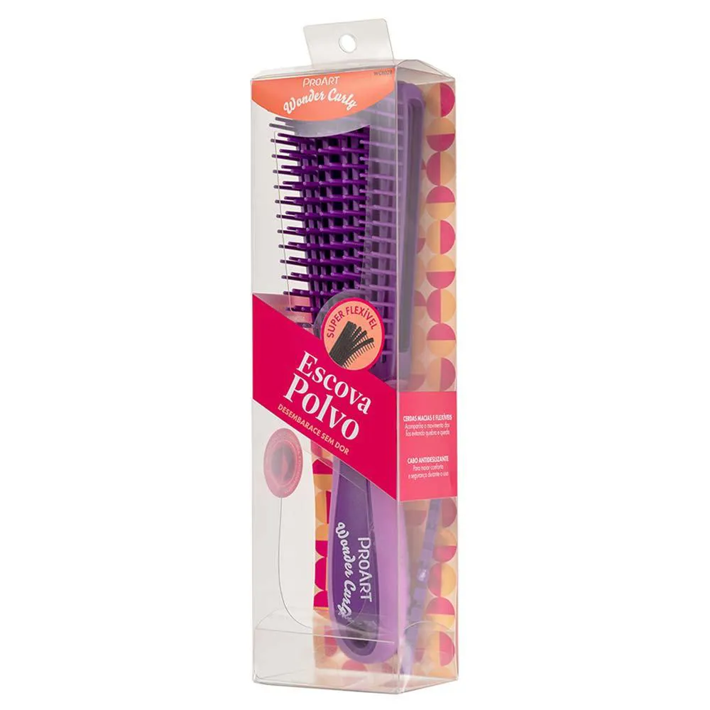 A Escova Polvo Wonder Curly é super-resistente e flexível ideal para cabelos ondulados, cacheados e crespos que se enroscam e embaraçam com facilidade. Graças a tecnologia das suas cerdas e linha super flexíveis a escova proporciona um desembaraço mais rápido, com menos quebra e sem dor, pois suas linhas flexíveis acompanham o movimento dos fios e desfazem os nós sem repuxar a raiz. Ideal para utilizar com cabelo molhado, é fácil de lavar e limpar.