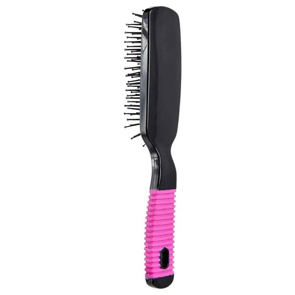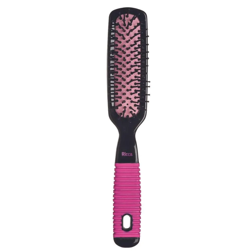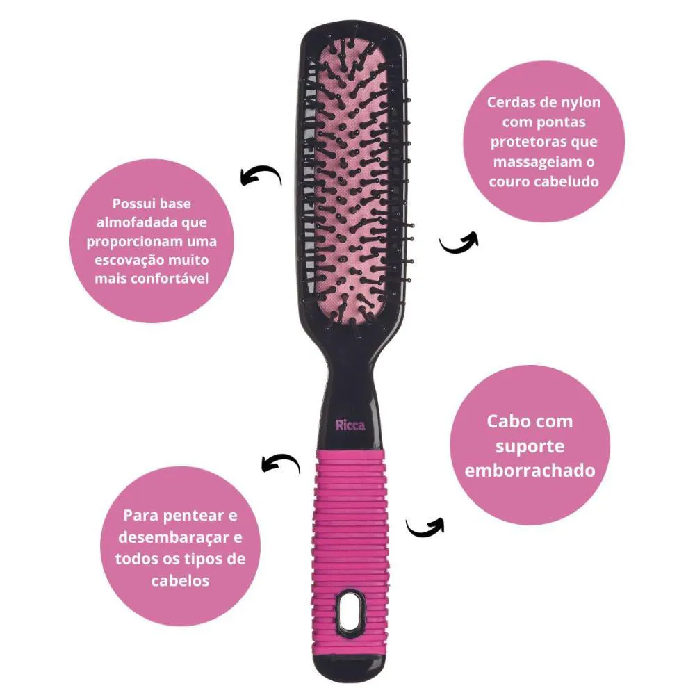 Escova Reta Black & Pink A Escova Reta Black & Pink possui base almofadada que proporcionam uma escovação muito mais confortável e cerdas de nylon com pontas protetoras que massageiam o couro cabeludo e cabo antideslizante. . Modo de Uso Passe a escova delicadamente pelos fios para desembaraçar e modelar como desejar. . Composição Polipropileno, nylon e pvc.