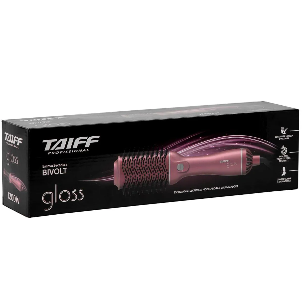 ========================================================================================= Escova Secadora Taiff Gloss Rosê 1200w Bivolt Chaveado A Escova Secadora Gloss foi desenvolvida para quem busca facilidade e eficiência no dia a dia.