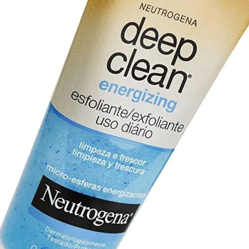 - Sensação refrescante e revitalizante na pele. Deep Clean Energizing proporciona para a pele uma sensação de bem-estar, de limpeza, frescor e energia revitalizada. O esfoliante facial de Neutrogena deve ser utilizado diariamente para apresentação de resultados constantes. Resultados: