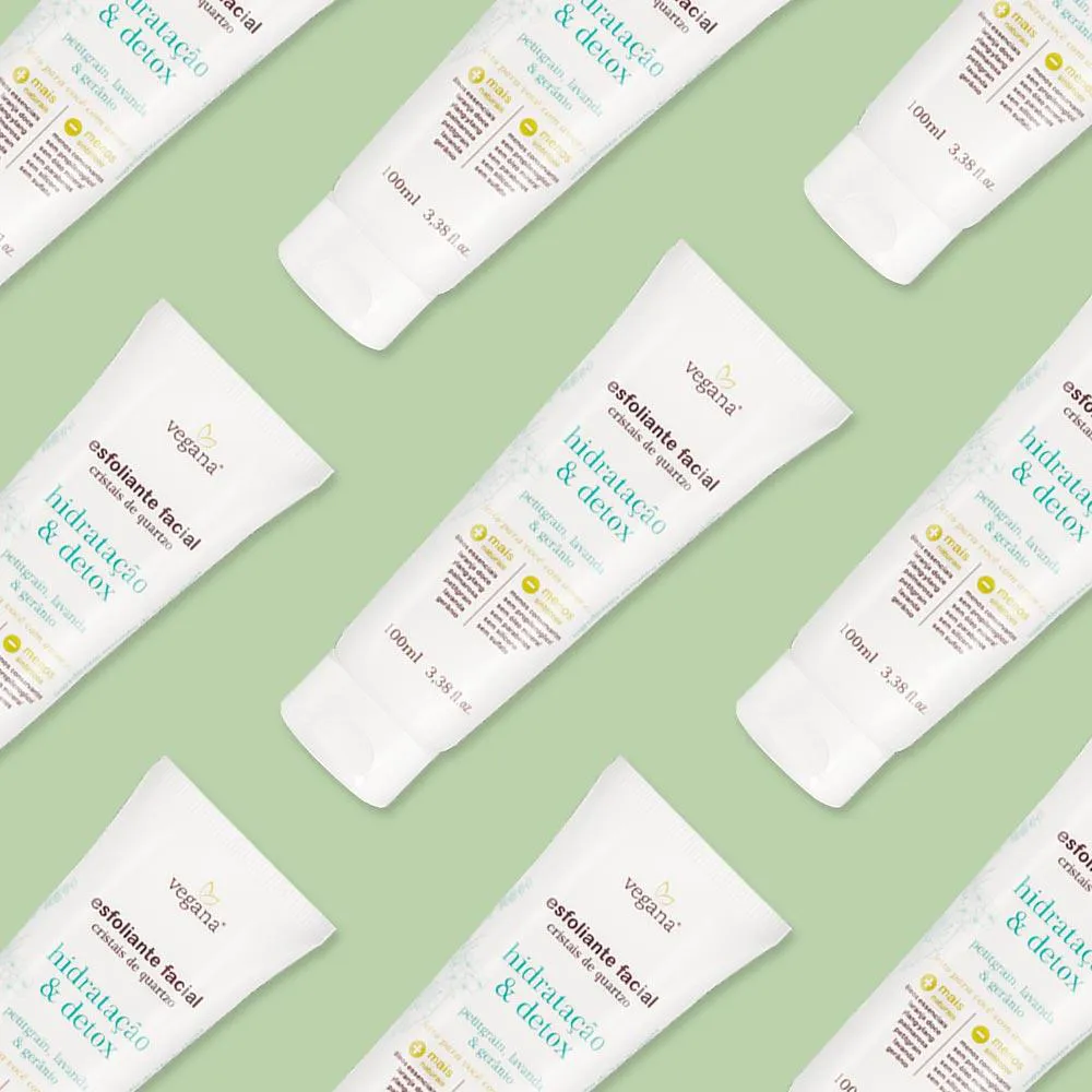 Limpeza e Hidratação com ingredientes funcionais e derivados vegetais, de alta compatibilidade com a fisiologia da pele, o Esfoliante Facial Vegana Hidratação & Detox foi desenvolvido com o objetivo de promover uma esfoliação de alta performance, estimulando a proliferação celular. Garante a renovação celular e equilíbrio do manto hidrolipídico.